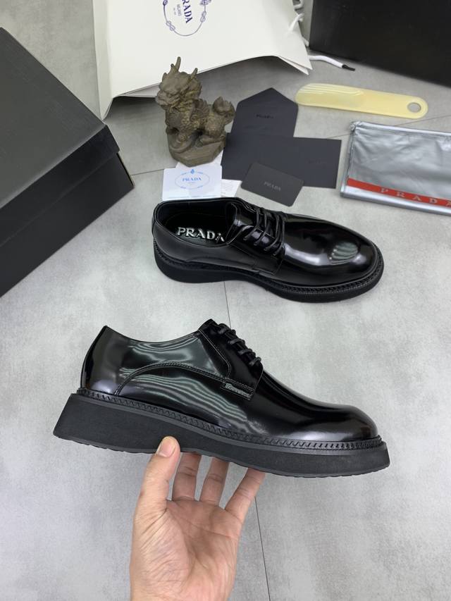 工厂p价p 实价 prada 顶级版本 普拉达新款休闲皮鞋 原版购入开发 做货 普拉达家男士经典系列 科技透气面料搭配牛皮 休闲运动鞋 休闲之履运动老爹鞋结合高科技透气材质与牛皮,侧面p家专属纽扣装饰 大底满满p斜体设计和鲜艳色彩展现活力,延续品牌设计灵感。轻盈漫步都市,感受无拘舒适。 Ddd 配送精美包装 Ddd 面料:原版定制小牛皮配透气材质 Ddd 内里:牛皮内里牛皮垫脚 Ddd 大底:开模Tpu发泡材质 Ddd 底厚:3.5Cm Ddd Size :男款38-45 黑色 酒红色颜色可选 DDD