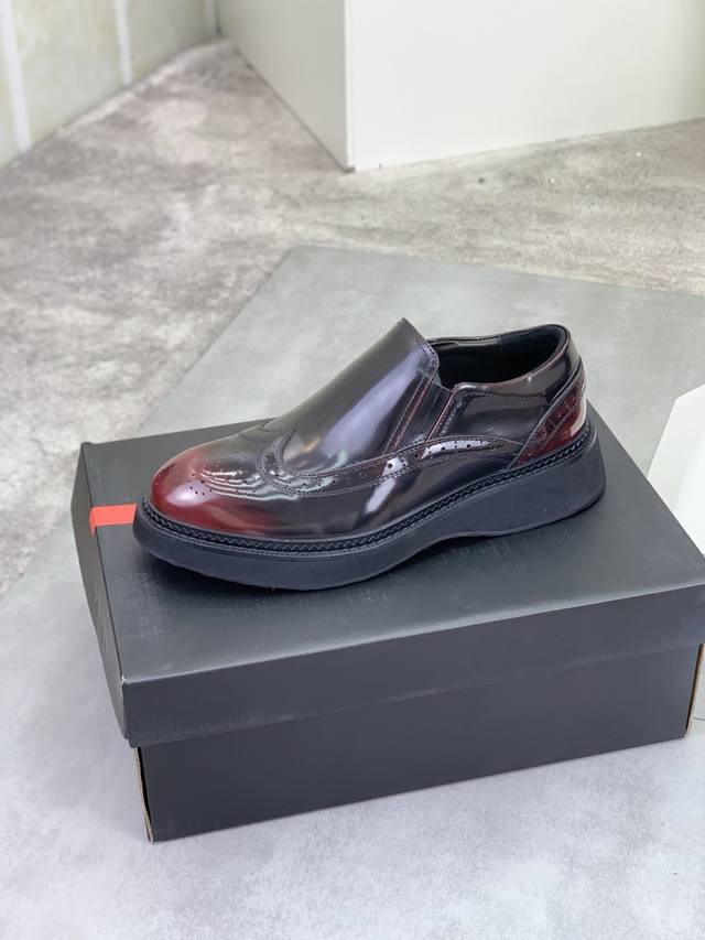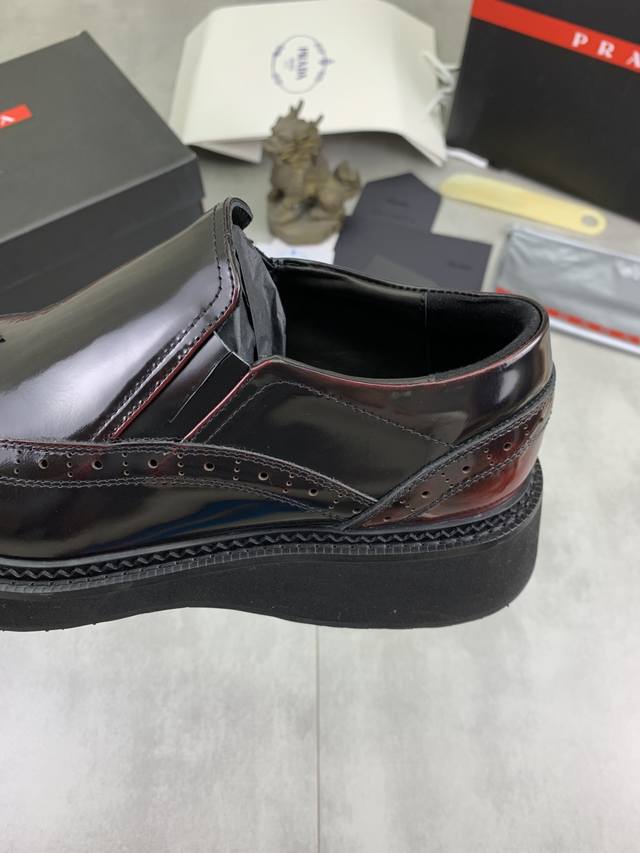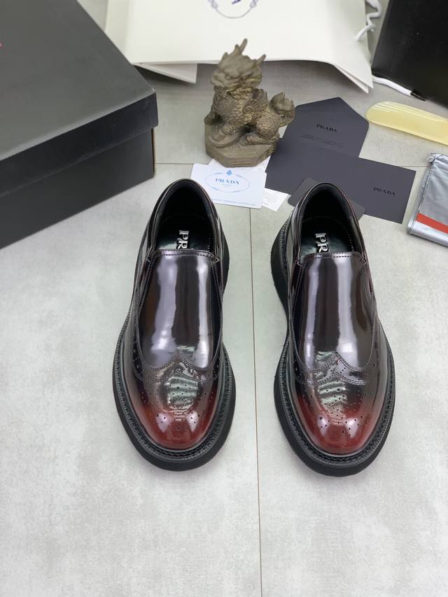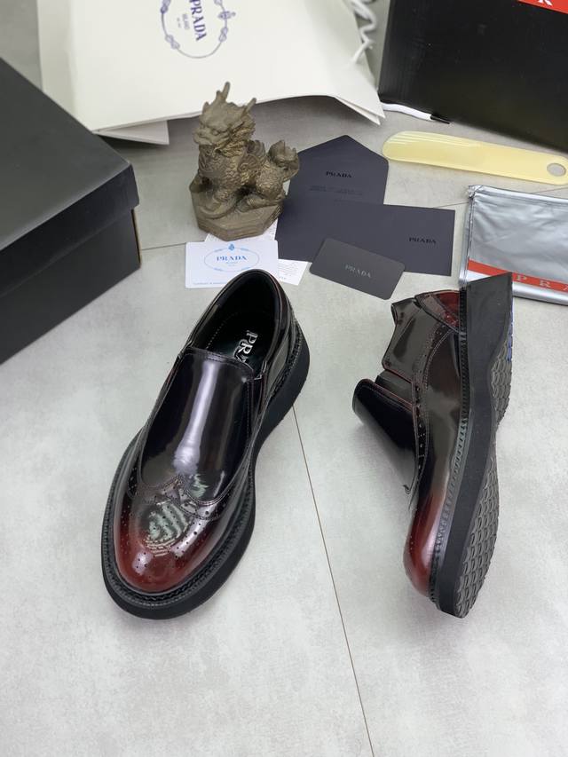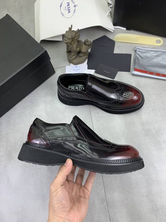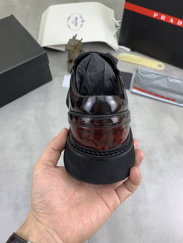 工厂p价p 实价 prada 顶级版本 普拉达新款休闲皮鞋 原版购入开发 做货 普拉达家男士经典系列 科技透气面料搭配牛皮 休闲运动鞋 休闲之履运动老爹鞋结合高科技透气材质与牛皮,侧面p家专属纽扣装饰 大底满满p斜体设计和鲜艳色彩展现活力,延续品牌设计灵感。轻盈漫步都市,感受无拘舒适。 Ddd 配送精美包装 Ddd 面料:原版定制小牛皮配透气材质 Ddd 内里:牛皮内里牛皮垫脚 Ddd 大底:开模Tpu发泡材质 Ddd 底厚:3.5Cm Ddd Size :男款38-45 黑色 酒红色颜色可选 DDD