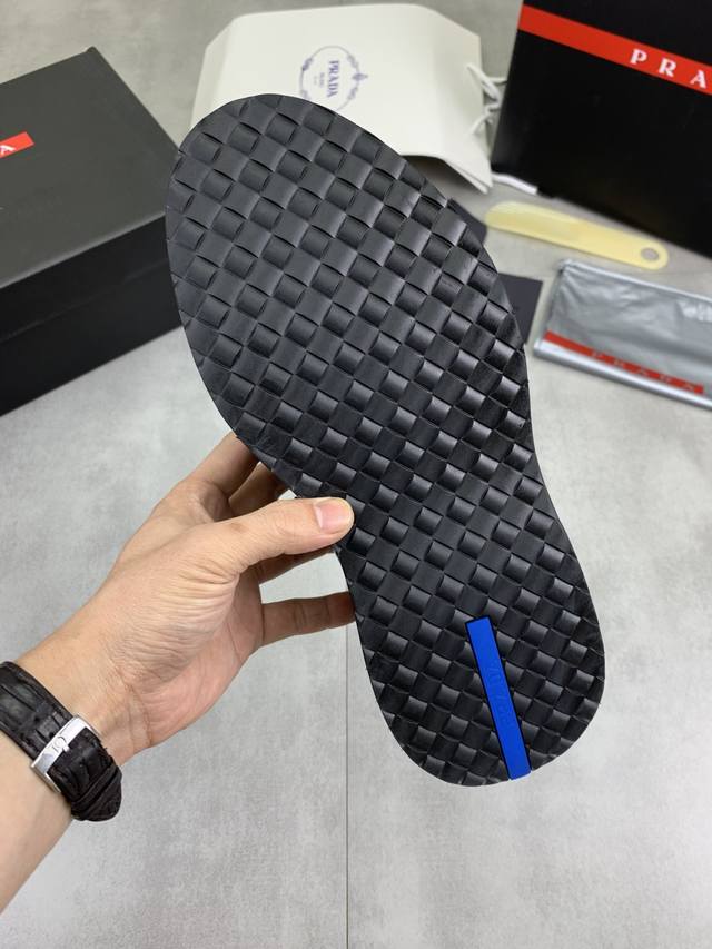 工厂p价p 实价 prada 顶级版本 普拉达新款休闲皮鞋 原版购入开发 做货 普拉达家男士经典系列 科技透气面料搭配牛皮 休闲运动鞋 休闲之履运动老爹鞋结合高