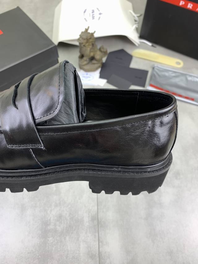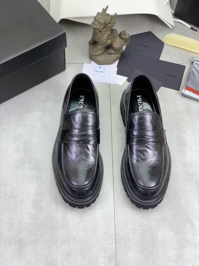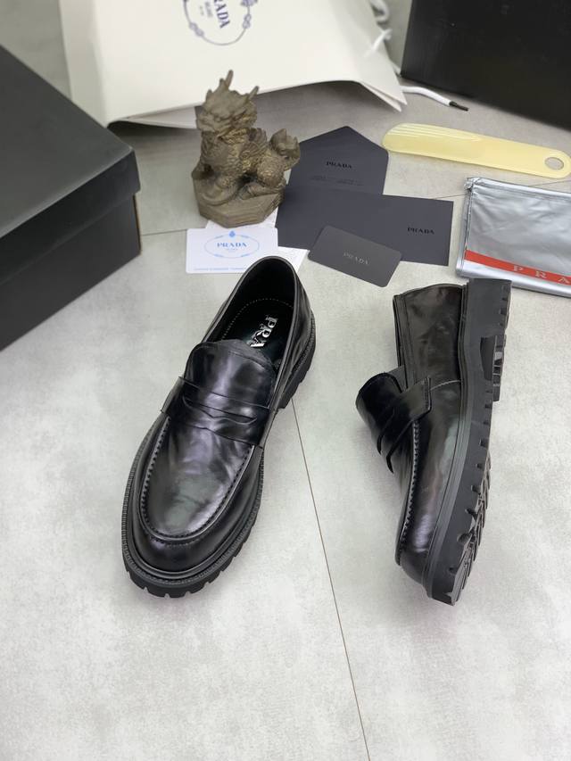 工厂p价p 实价 prada 顶级版本 普拉达新款休闲皮鞋 原版购入开发 做货 普拉达家男士经典系列 科技透气面料搭配牛皮 休闲运动鞋 休闲之履运动老爹鞋结合高