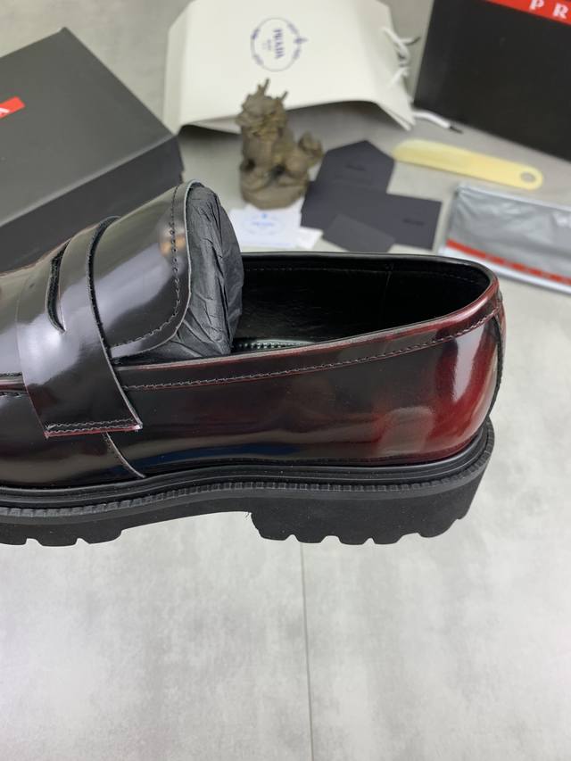 工厂p价p 实价 prada 顶级版本 普拉达新款休闲皮鞋 原版购入开发 做货 普拉达家男士经典系列 科技透气面料搭配牛皮 休闲运动鞋 休闲之履运动老爹鞋结合高科技透气材质与牛皮,侧面p家专属纽扣装饰 大底满满p斜体设计和鲜艳色彩展现活力,延续品牌设计灵感。轻盈漫步都市,感受无拘舒适。 Ddd 配送精美包装 Ddd 面料:原版定制小牛皮配透气材质 Ddd 内里:牛皮内里牛皮垫脚 Ddd 大底:开模Tpu发泡材质 Ddd 底厚:3.5Cm Ddd Size :男款38-45 黑色 酒红色颜色可选 DDD
