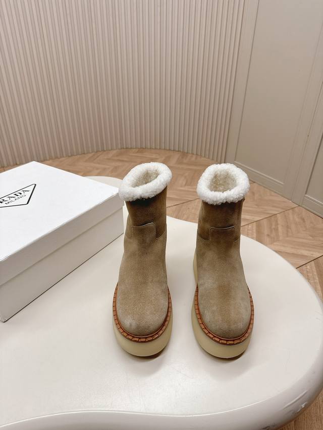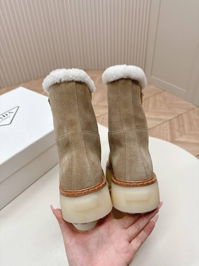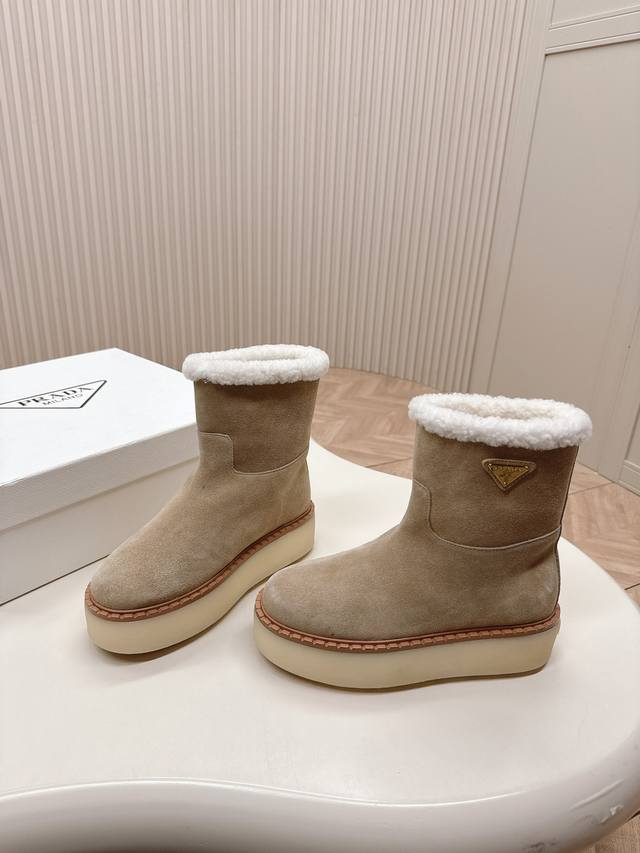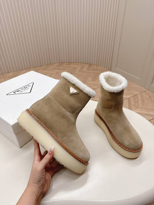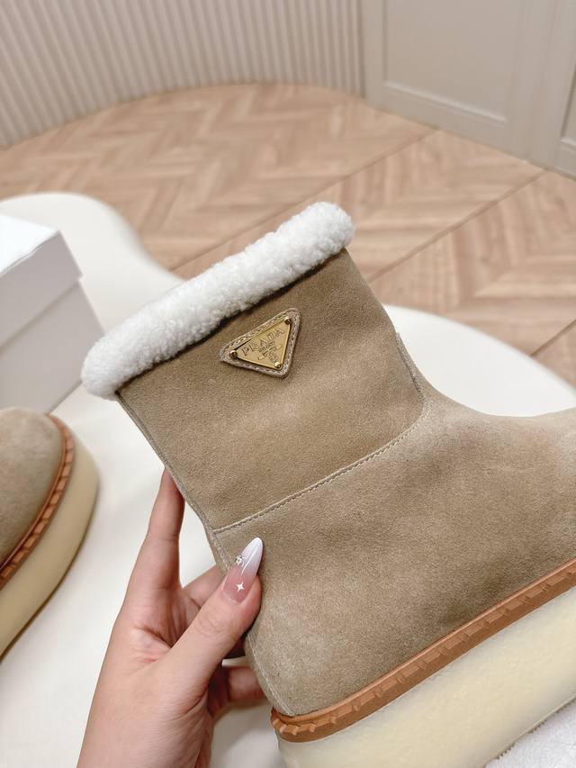 / 市面最高版本 prada 普拉达25秋冬新款△三角标羊毛鞋,材质细节可对比原版,市面普通版本区分!厚底靴 雪地靴 鞋面:双色擦色牛绒真 内里:羊羔毛 大底:真皮
