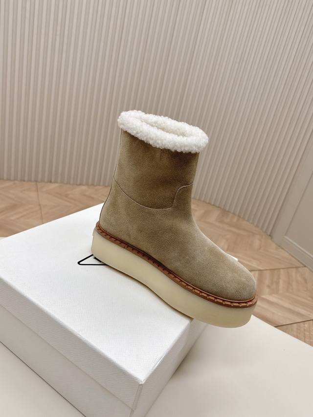 市面最高版本 prada 普拉达25秋冬新款△三角标羊毛鞋,材质细节可对比原版,市面普通版本区分!厚底靴 雪地靴 DDD 鞋面:双色擦色牛绒真 Ddd 内里:羊羔毛 Ddd 大底:真皮沿条 双色Tpu大底 Ddd Size:35-39 40 41定做不退换 DDD