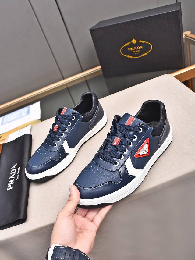 / 新款普拉达休闲男鞋意大利著名的奢侈品品牌,目前超爱的款,脚感很好,洋气时髦,显得脚型很正,走起路来也很轻便~鞋型很正,上脚非常好看!面鞋面进口牛皮水洗羊里,大底
