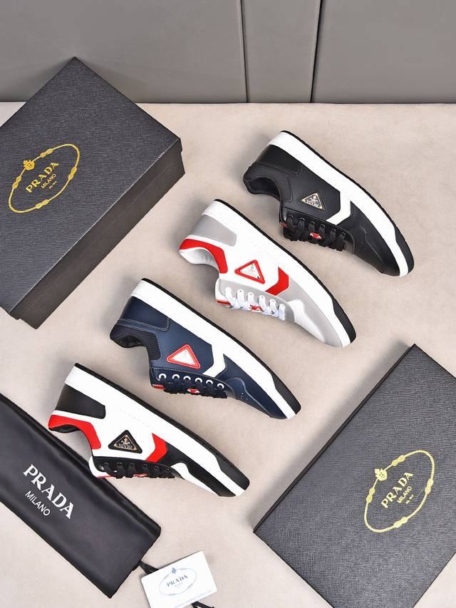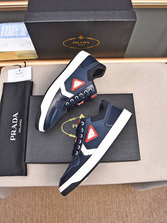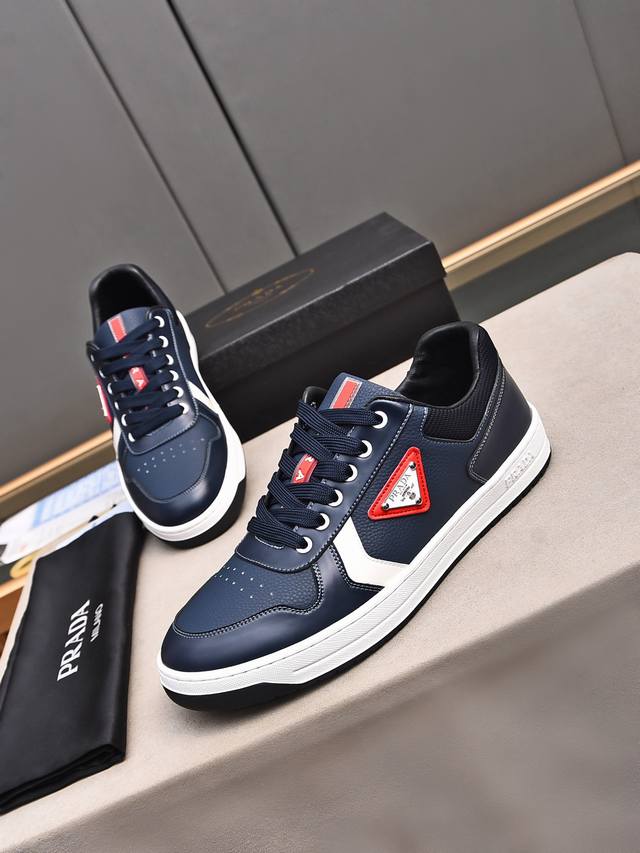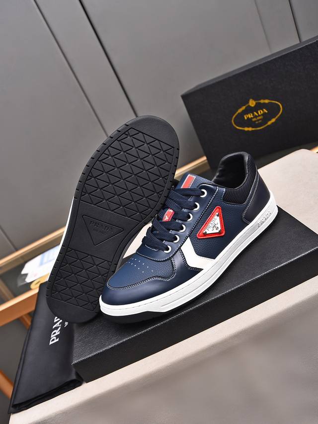 新款普拉达休闲男鞋意大利著名的奢侈品品牌,目前超爱的款,脚感很好,洋气时髦,显得脚型很正,走起路来也很轻便~鞋型很正,上脚非常好看!面鞋面进口牛皮水洗羊里,大底采用防滑运动专属带logo底,舒适 首选好男鞋 长期不过时款!