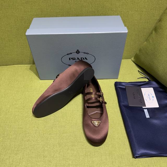 新色 prada普拉达 25Ss秋冬新款 小红书各大博主推荐,1-1开发 彰显经典魅力。 原版Tpu大底,进口混种羊内里。 芭蕾平底鞋采用优雅的锥形轮廓搭配系带