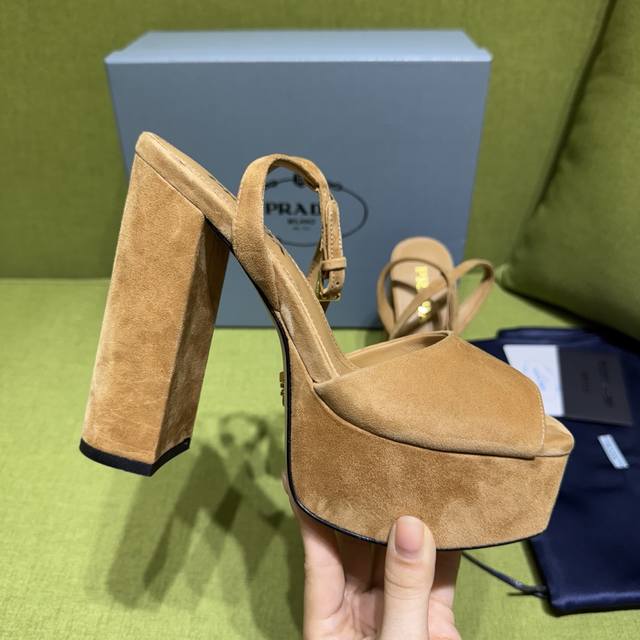 新色prada 普拉达2025Ss秋季新品 Saffiano高跟厚底绒面皮凉鞋,秉承现代设计理念,绽现精致魅力。 织物的新雅色彩平添明艳格调。标志性三角形徽标彰显品牌特色。此徽标由Mario prada设计而来。 DDD 面料:绒面皮 DDD 内里:羊皮 DDD 跟高: 14Cm 水台4Cm DDD 码数:35一42 35. 40-42定做不退换 DDD 出厂价pp: DDD