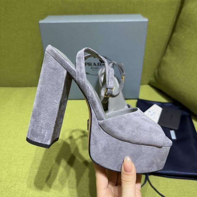新色prada 普拉达2025Ss秋季新品 Saffiano高跟厚底绒面皮凉鞋,秉承现代设计理念,绽现精致魅力。 织物的新雅色彩平添明艳格调。标志性三角形徽标彰显品牌特色。此徽标由Mario prada设计而来。 DDD 面料:绒面皮 DDD 内里:羊皮 DDD 跟高: 14Cm 水台4Cm DDD 码数:35一42 35. 40-42定做不退换 DDD 出厂价pp: DDD