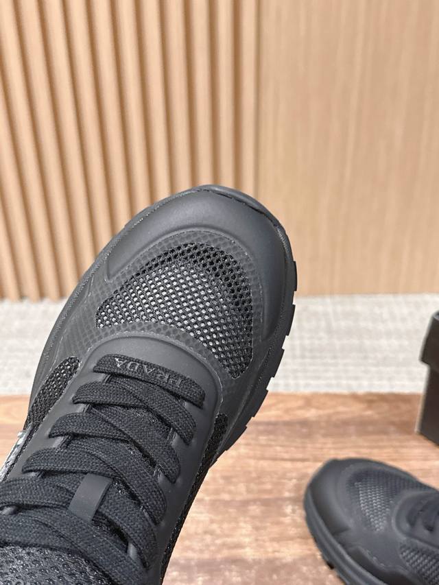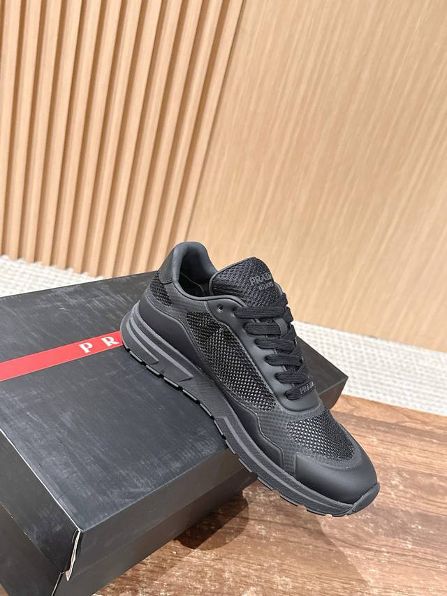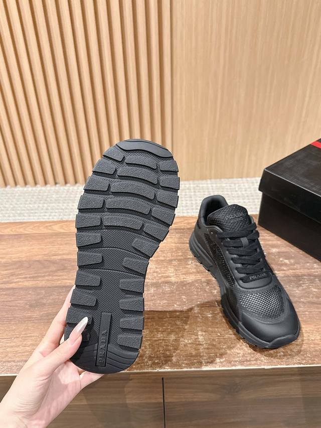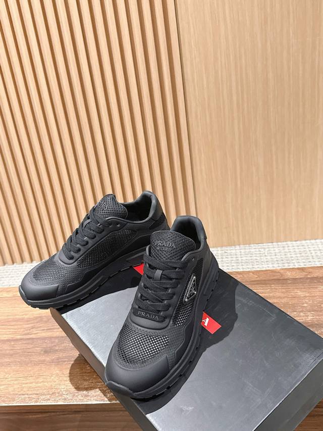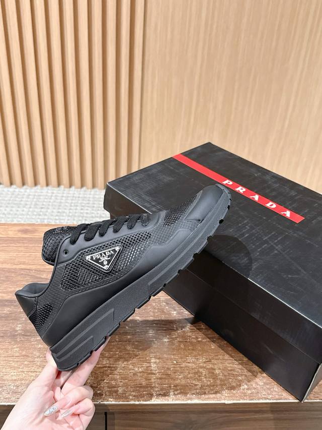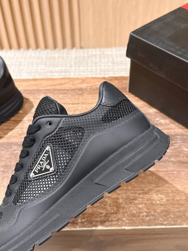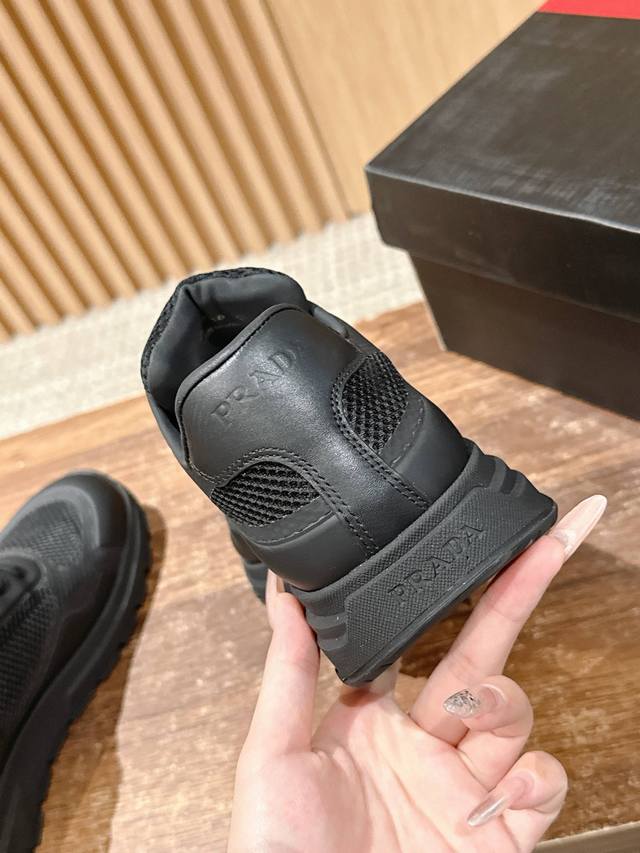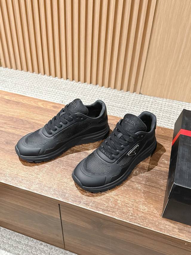 普拉达男士三角标休闲运动鞋 网布+牛皮材质 时尚百搭 底厚4.5Cm Size :39-44 38 45定制不退换