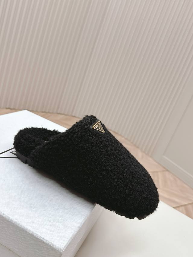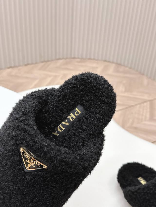 普拉达 prada24秋冬毛毛拖鞋系列 半拖羊毛拖鞋 舒适 萌萌哒 可爱 时尚 高雅 百搭 ,羊毛舒适柔软,唤醒秋冬暖意。让您从早到晚舒适踱步。搭配袜子可以轻松驾驭四季变幻。羊毛,原版大底!35-40码 DDD