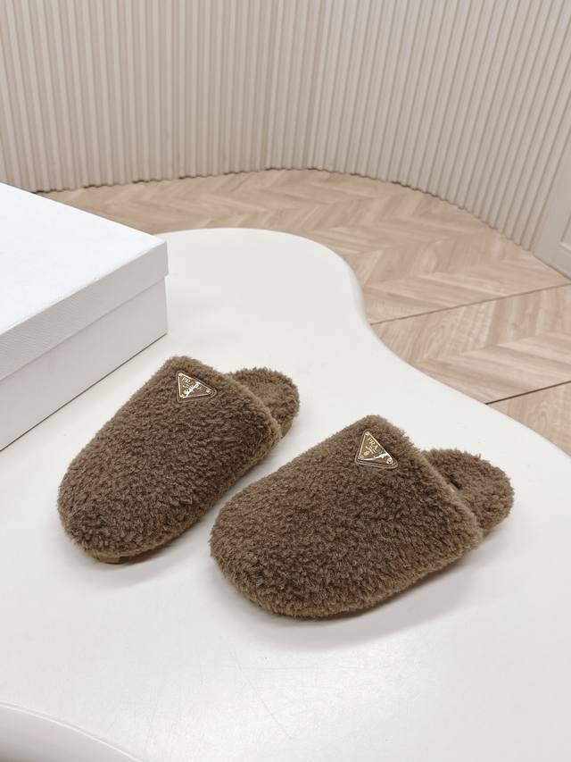 普拉达 prada24秋冬毛毛拖鞋系列 半拖羊毛拖鞋 舒适 萌萌哒 可爱 时尚 高雅 百搭 ,羊毛舒适柔软,唤醒秋冬暖意。让您从早到晚舒适踱步。搭配袜子可以轻松驾驭四季变幻。羊毛,原版大底!35-40码 DDD