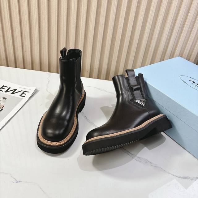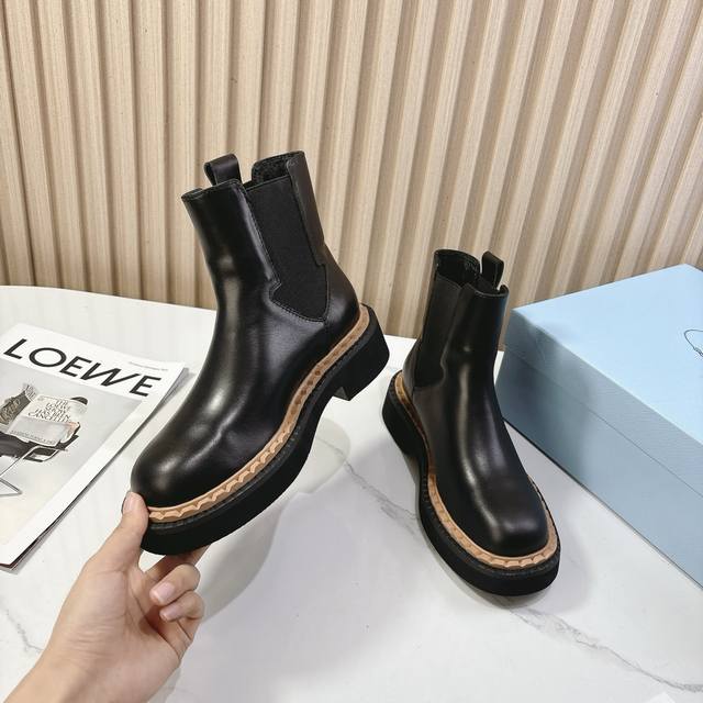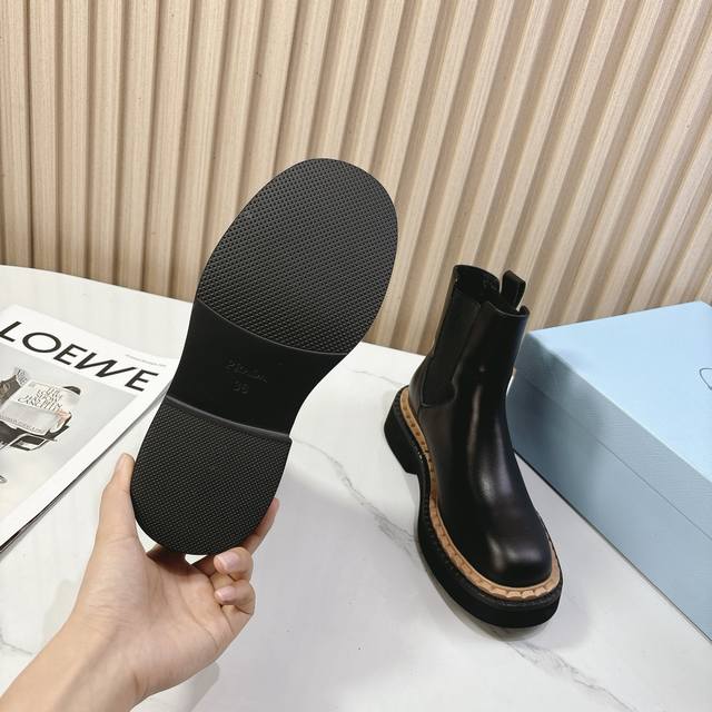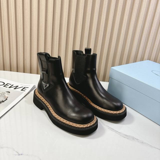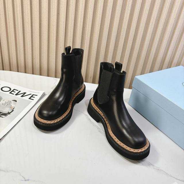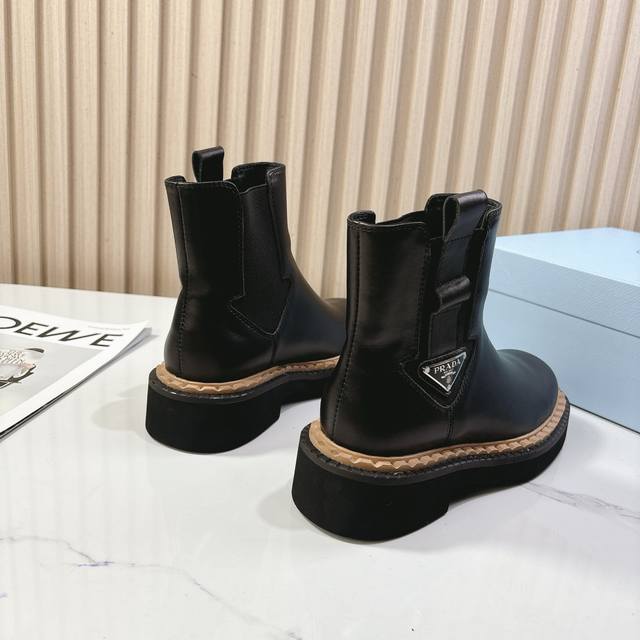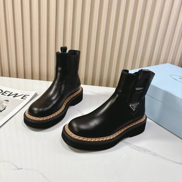 普拉达Prada 2024新款 厚底靴系列 简约大气百搭系列 牛皮/开边珠牛皮面 羊皮内里 原版大底 35-41码