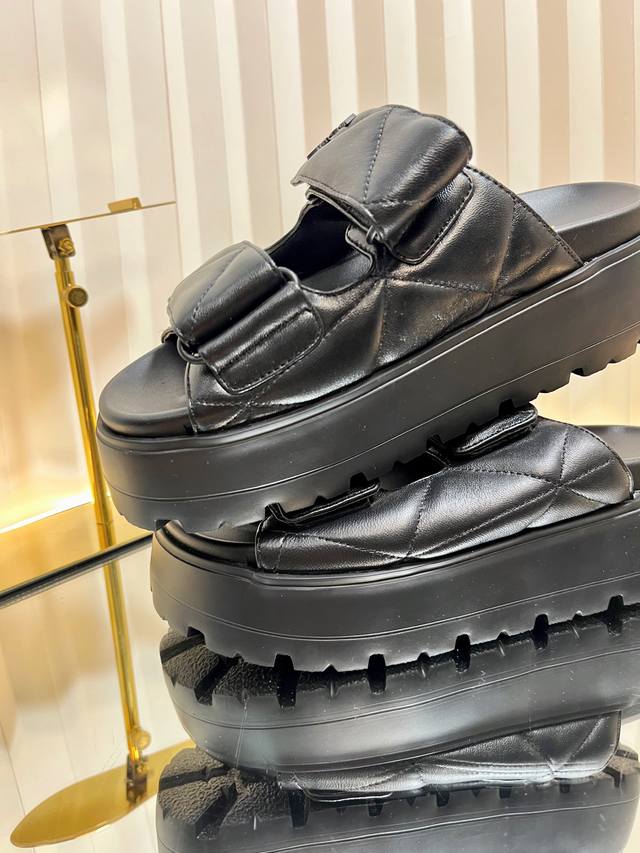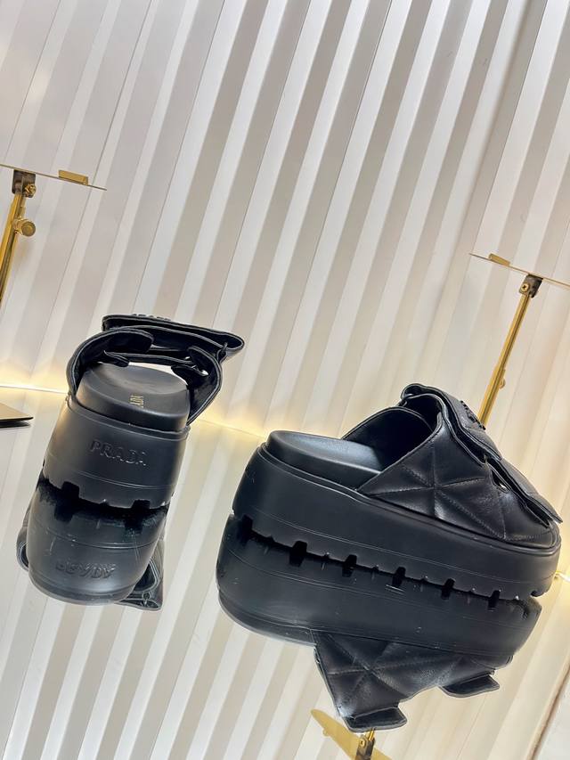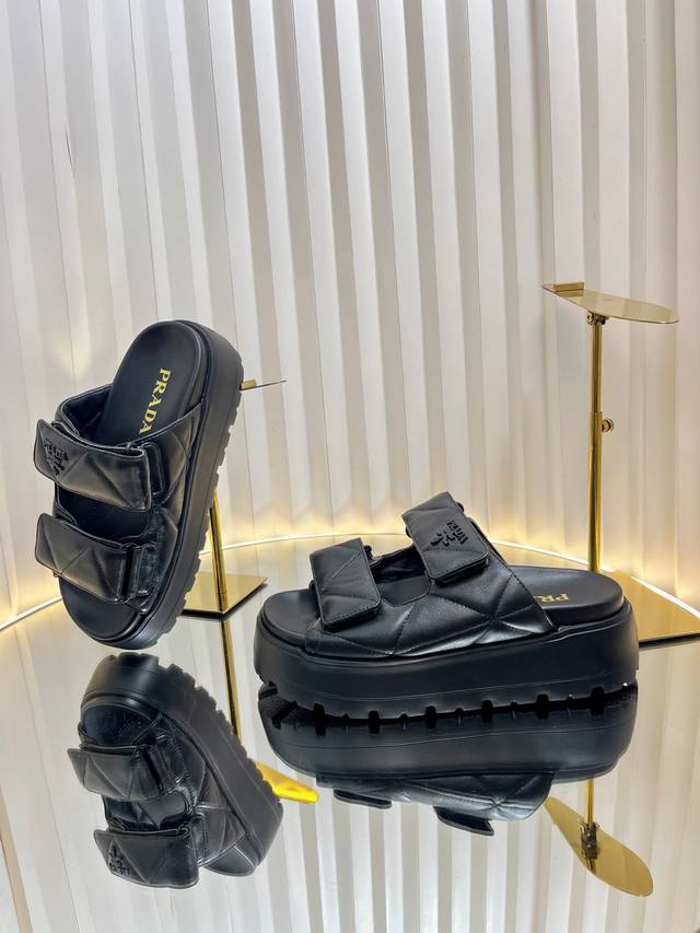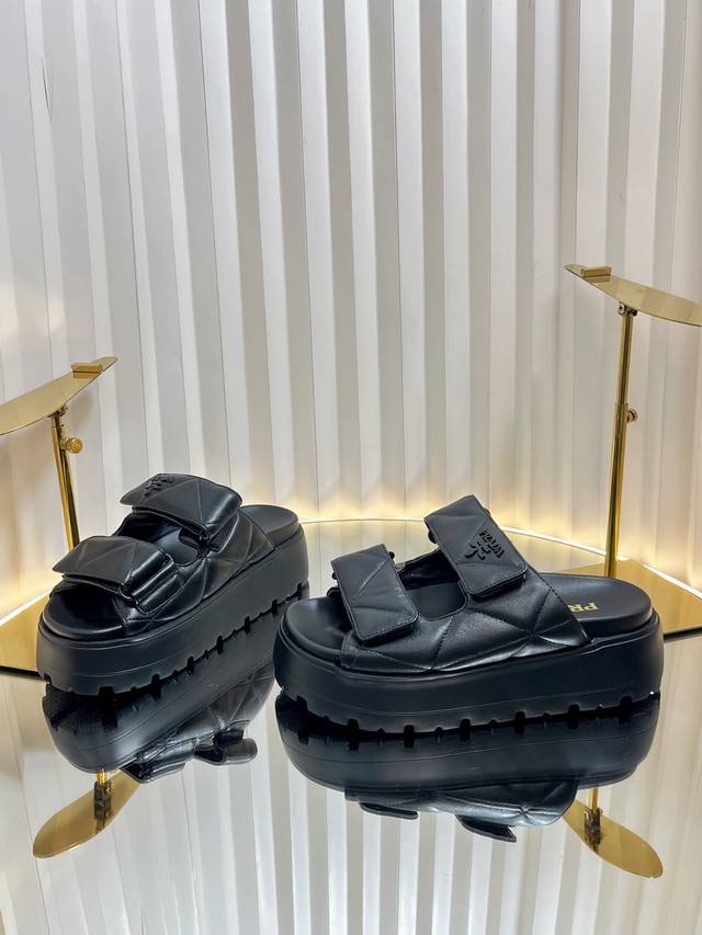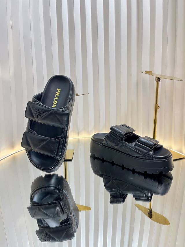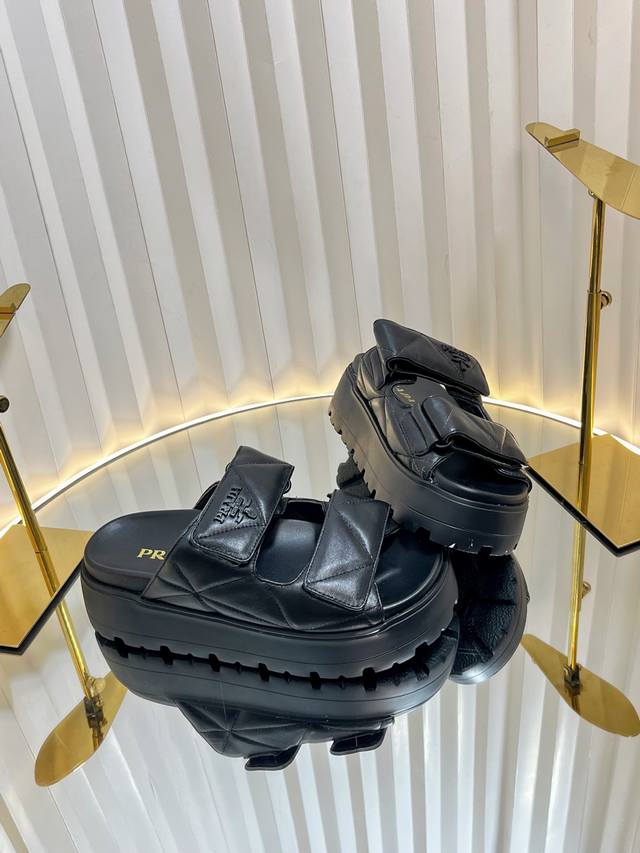 最新系列 Prad* 普拉达25款 厚底魔术贴凉鞋 拖鞋