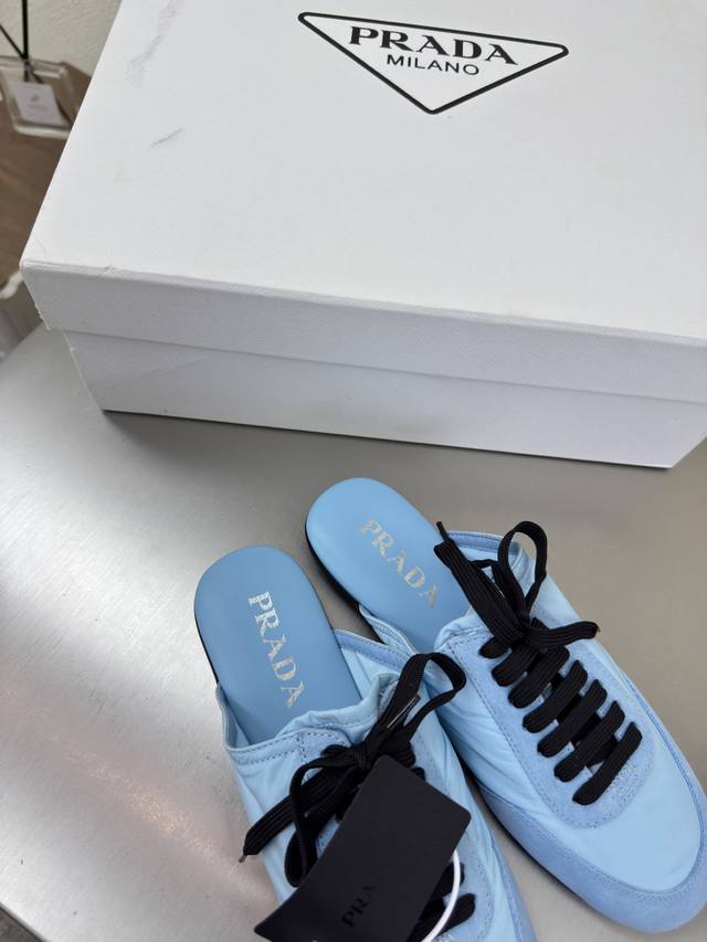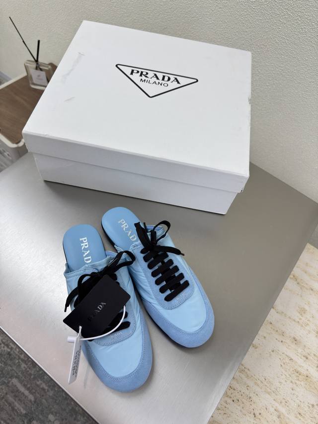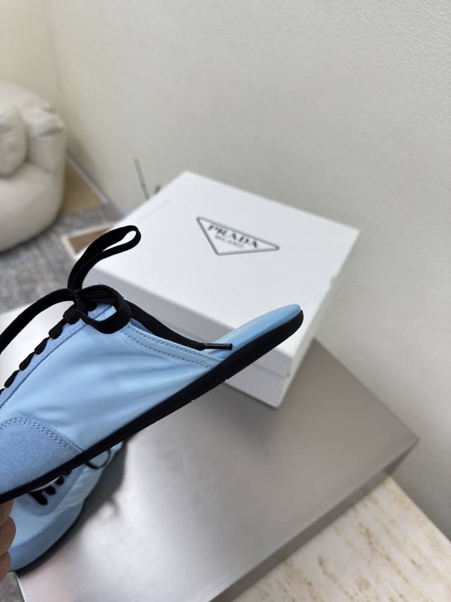 爆款潮流运动鞋 11色全网最齐色Prada 棕色 雾蓝色 平底设计 简约设计 搭配三角标 Logo 的设计和简约的线条 很有格调 简单纯粹得色调 原版开模 舒适
