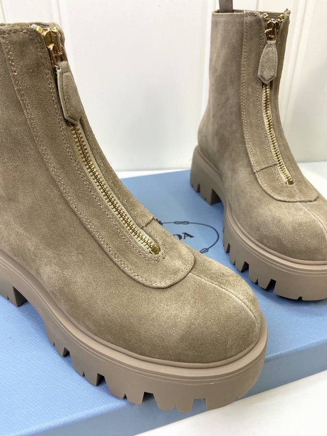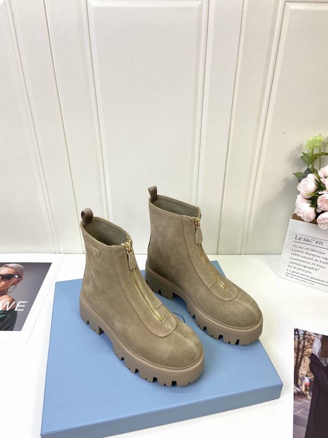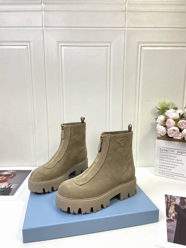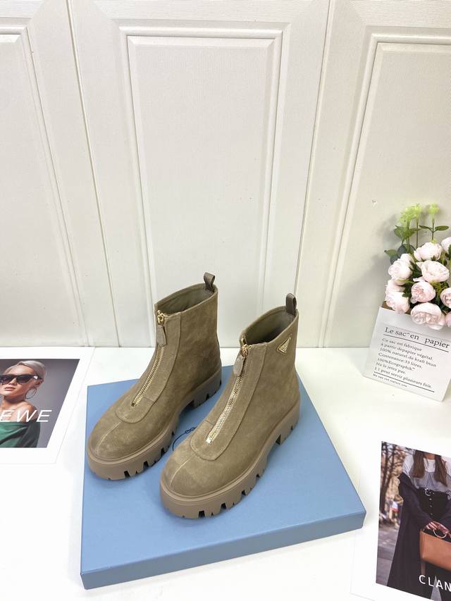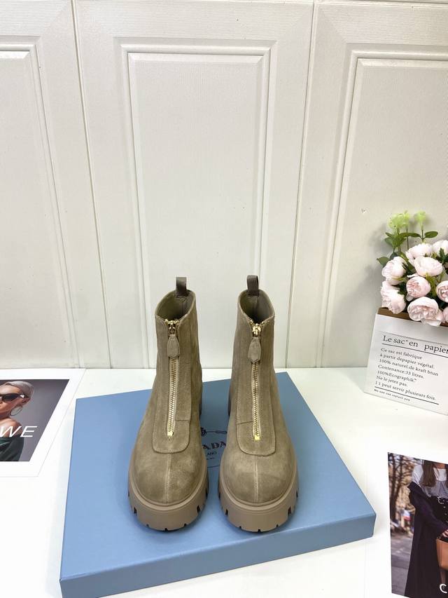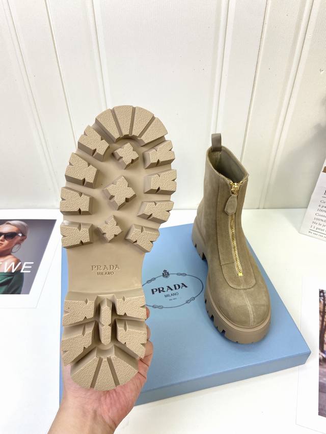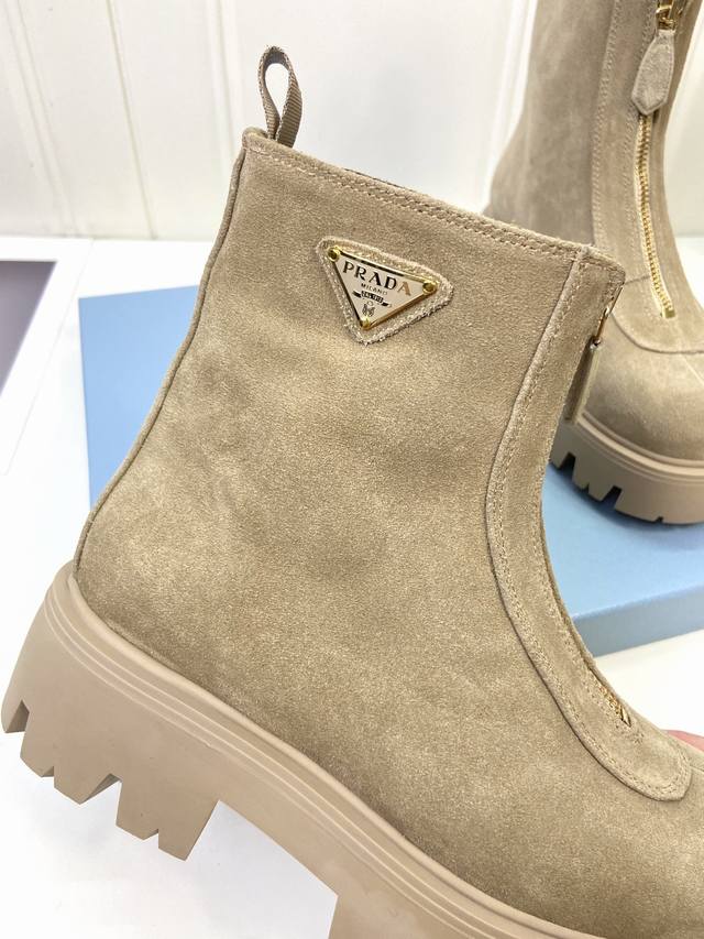 牛反绒款 prada 普拉达经典三角标一脚蹬王炸女靴 短靴 冬天买不到的系列,绝对是今年的大爆款!!贼好看!prada靴子真的很哇塞!上脚大气显腿瘦气质这块刚好