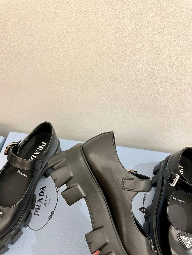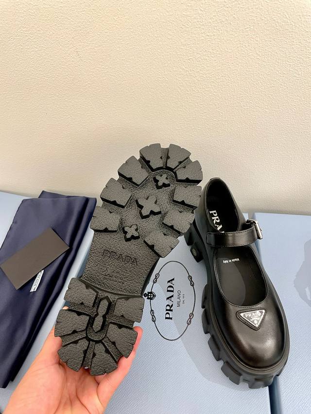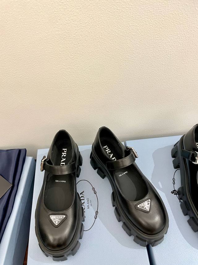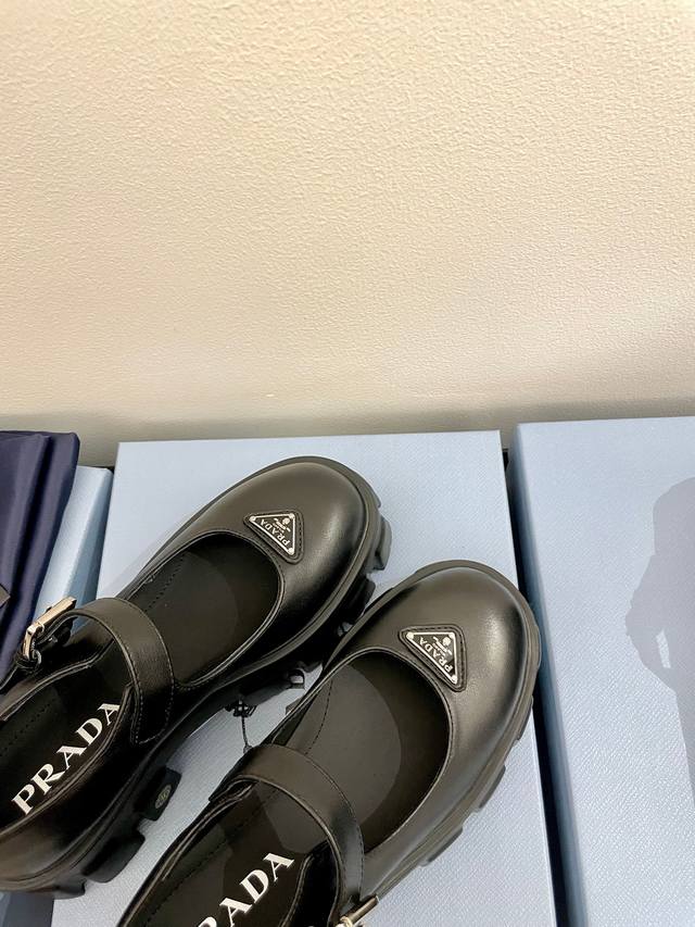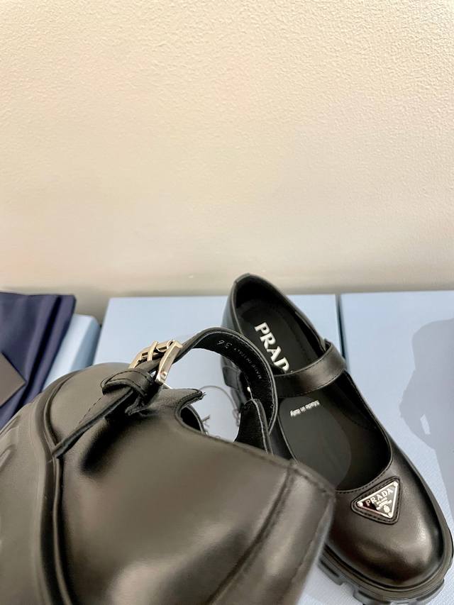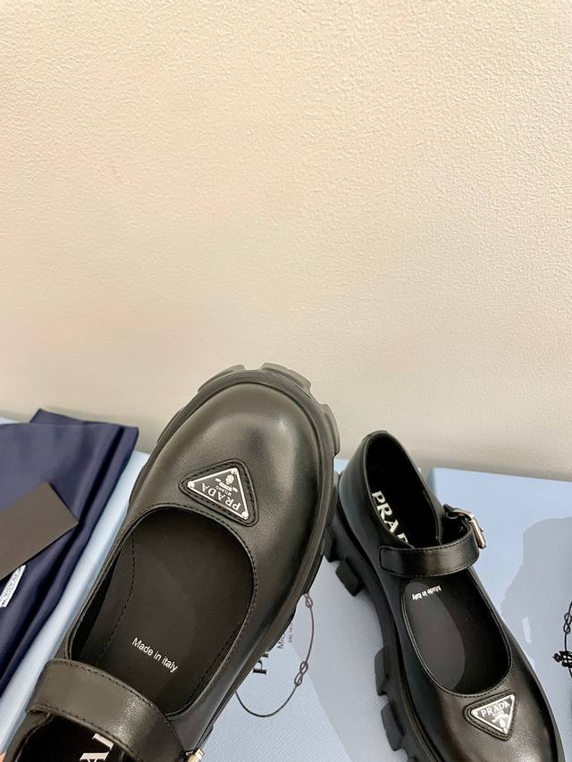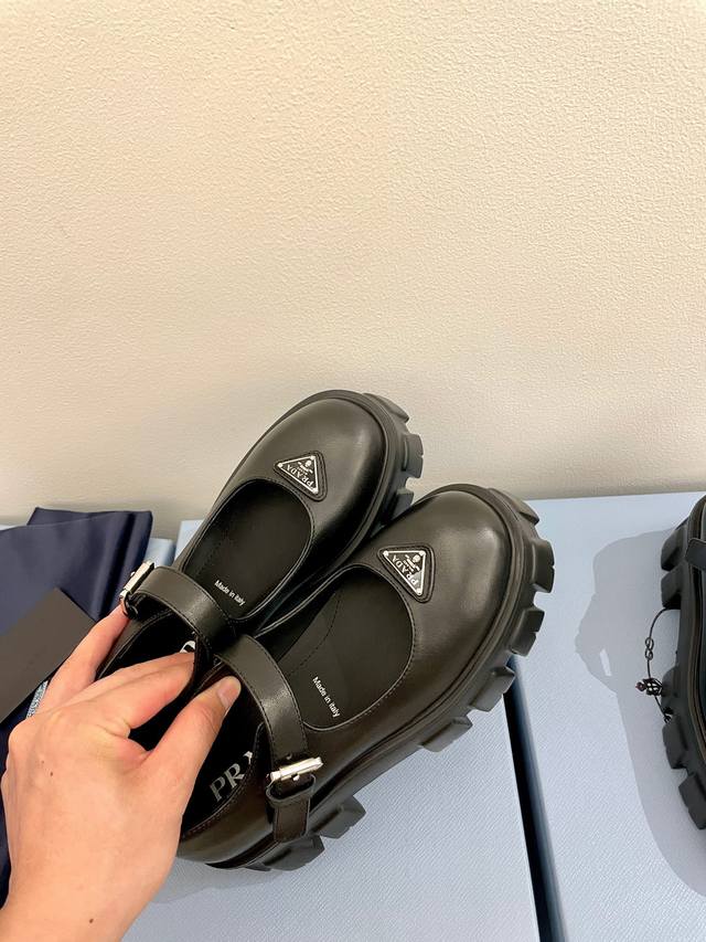 牛皮面 Prada 普拉达25新款玛丽珍厚底单鞋松糕鞋 标志性Monolith鞋履的几何设计和大胆廓形为此款玛丽珍鞋赋予全新风格。混搭风格的鞋履结合经典线条和大胆细节,灵感源自 Prada美学内在的二元性。鞋面配有饰带和金属搭扣 涂珐琅金属三角形徽标 复古时髦前卫的轮齿厚底鞋底搭配牛皮鞋面让整双鞋轻便舒适 鲜艳色彩 满足不同风格时髦人士的多种选择!标志性Logo印花搭配古沙滩凉鞋造型,每一个设计元素都踩在时髦点上! 让整双鞋轻便舒适 鲜艳色彩 满足不同风格时髦人士的多种选择! 鞋面采用原版进口开边珠牛皮