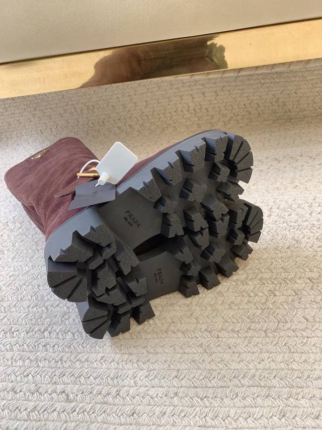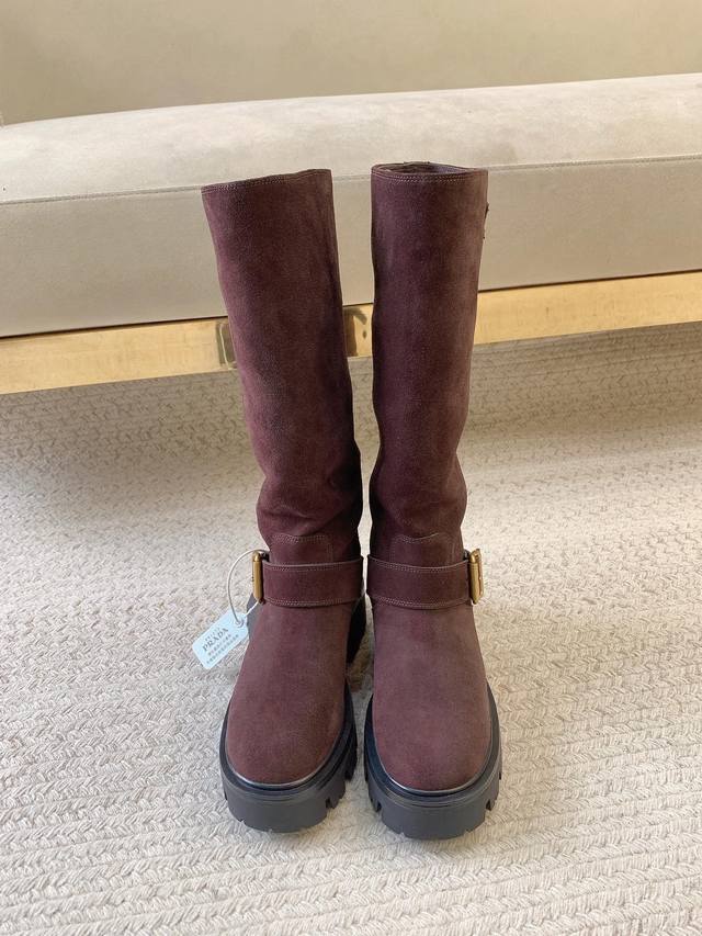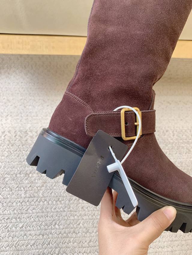 牛绒 牛皮 Prad*Ss25新款三角标厚底长筒靴 原版套楦 顶级品质 材质 鞋面:进口牛绒 进口牛皮 内里:进口羊皮里 大底:进口定制橡胶底 码数:35-39 34.40.41定做不退不换