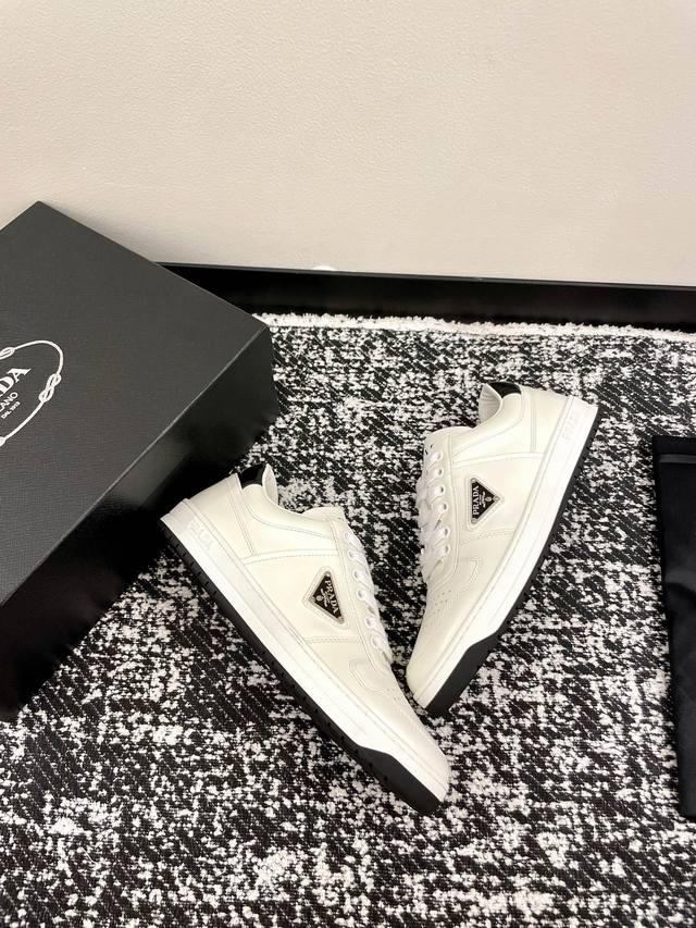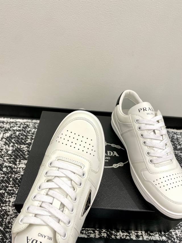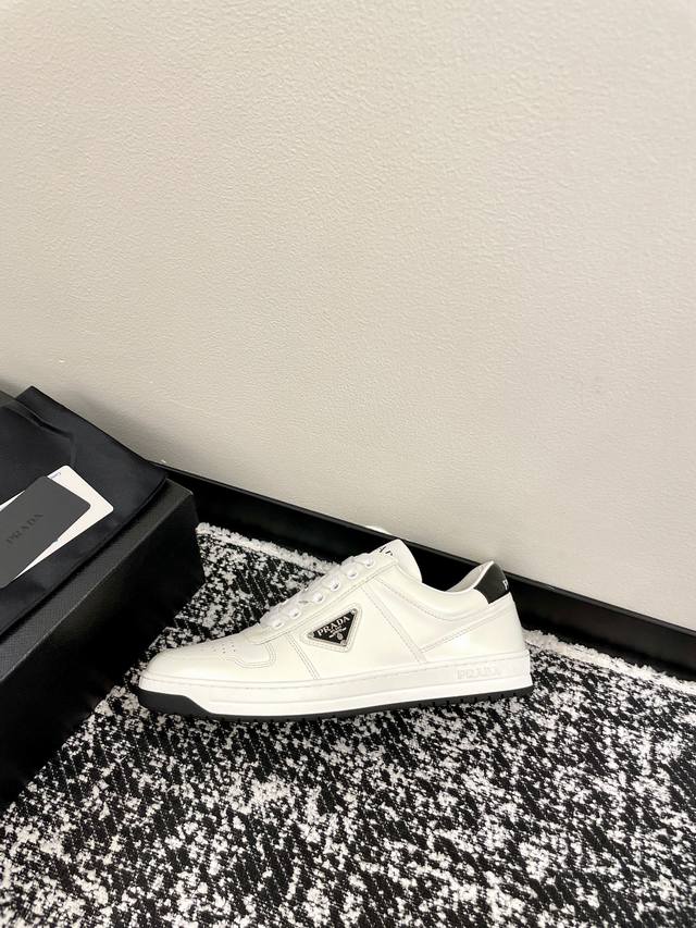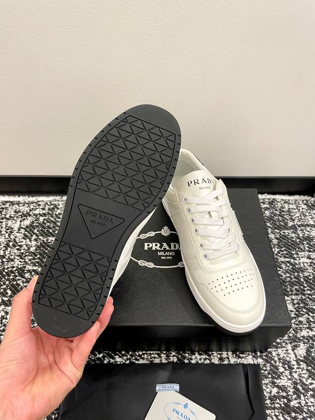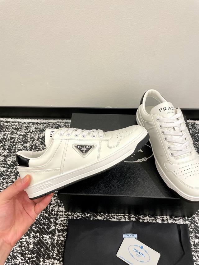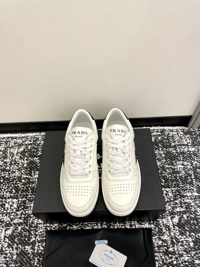 男款+10!Prada Downtown 情侣款小白鞋这款简直是我心目中的白月光,运动鞋延续经久不衰的轮廓,新款单品。采用白色牛皮革精心制作, 提升格调,搭配“