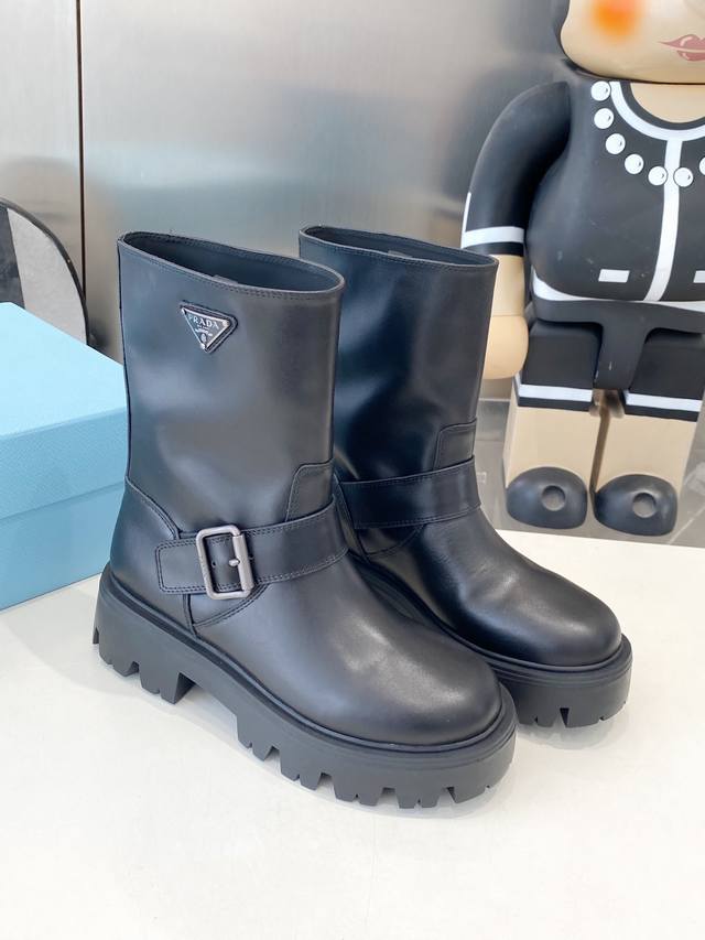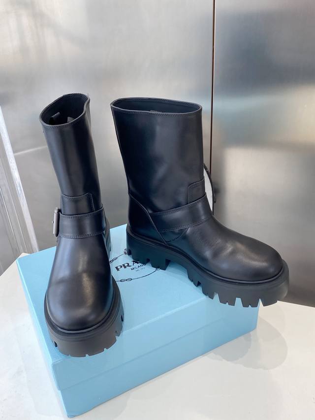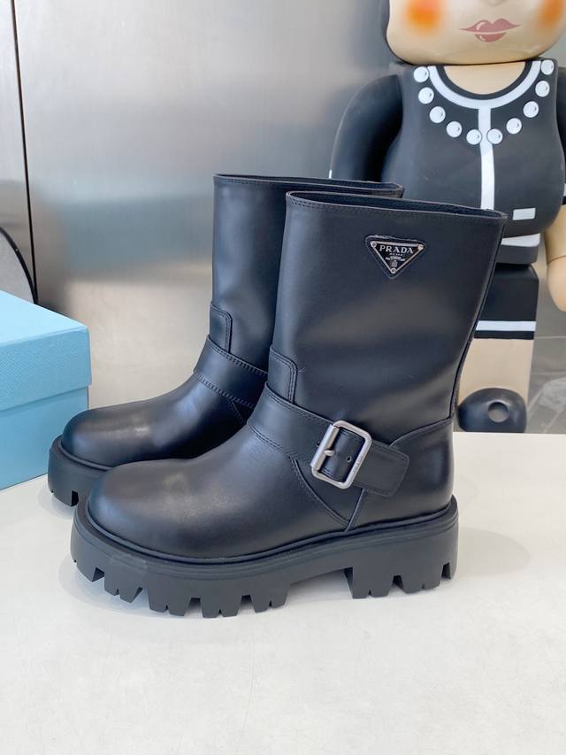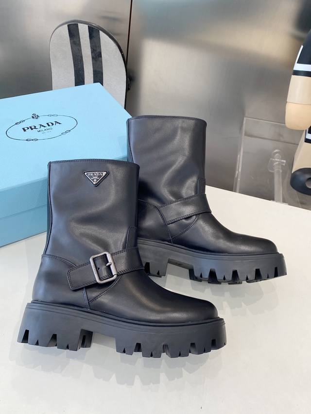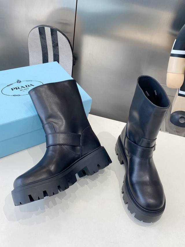 皮面 牛猄 Prad* 25Ss普拉达经典三角标一脚蹬王炸女靴 冬天买不到的系列,绝对是今年的大爆款!!贼好看!Prada靴子真的很哇塞!上脚大气显腿瘦气质这块