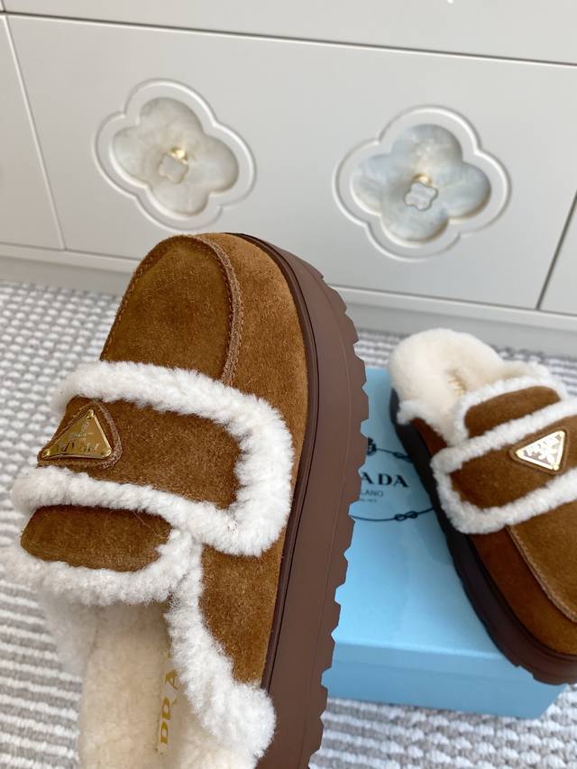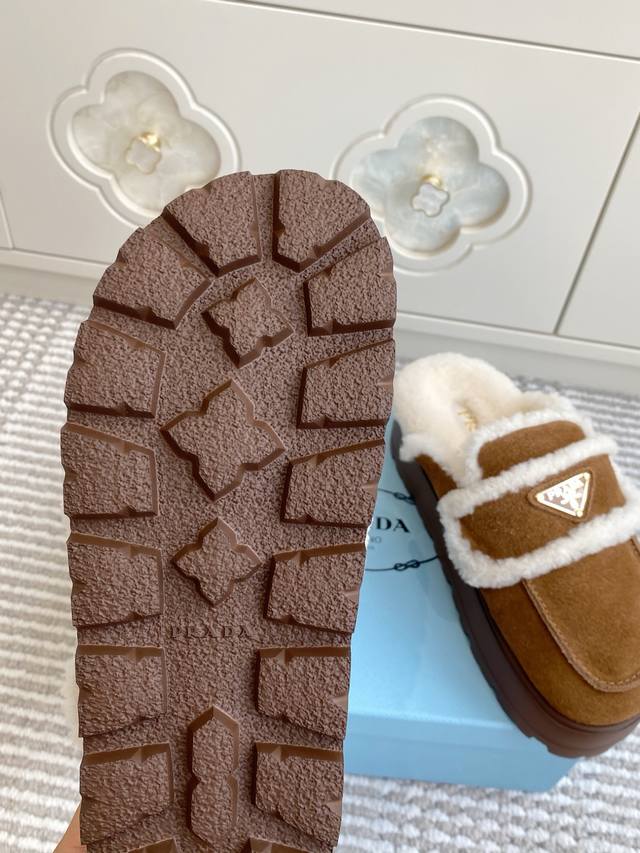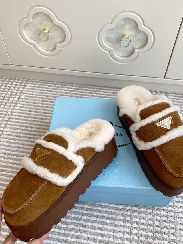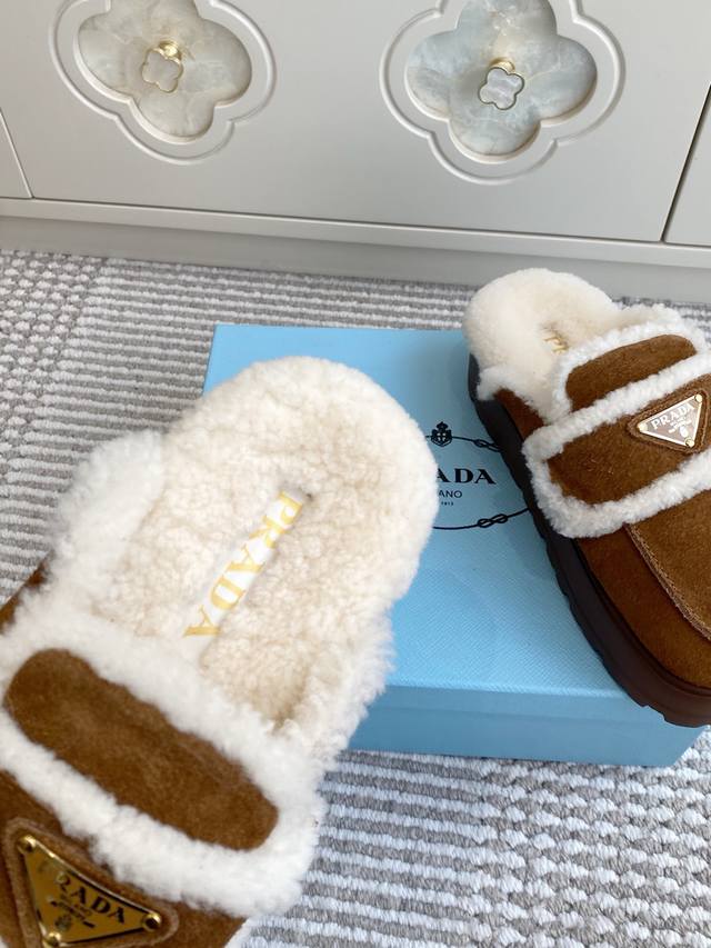 秋冬厚底穆勒毛毛拖鞋|奢享暖意步履 DDD 全新 三角标 限定系列 DDD 以丝光反绒牛皮雕琢鞋身 DDD 内里甄选澳洲进口羊皮毛一体 DDD 如踏云端 暖意自脚尖漫延 DDD 原版开模橡胶厚底 DDD 既撑起慵懒时髦廓形 DDD 亦藏入恰到好处的舒适哲学 DDD 尺寸35-39常规码全 DDD 40 41码可接受定制 定制恕不退换 DDD 这个冬天 DDD 让双脚陷进普拉达的温柔里 DDD 在雪地与暖室间 从容游走 DDD #prada新品 #羊绒拖鞋 #奢侈品质感 #冬日暖履 DDD