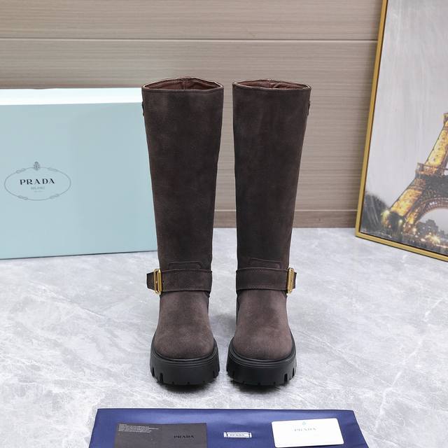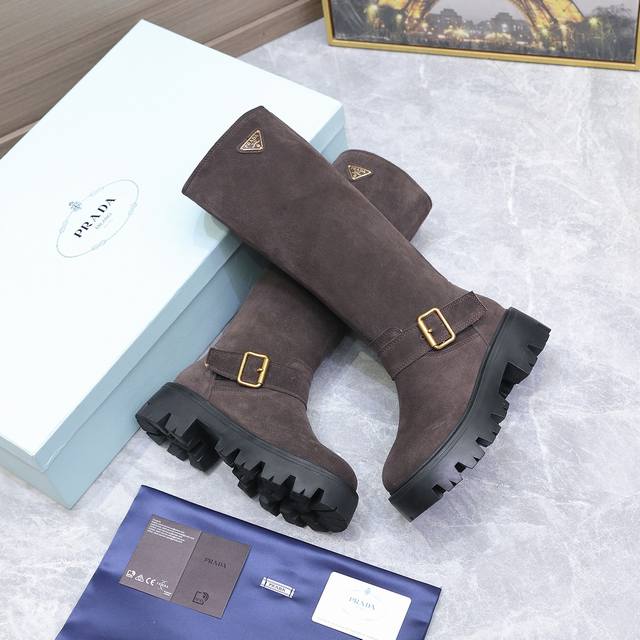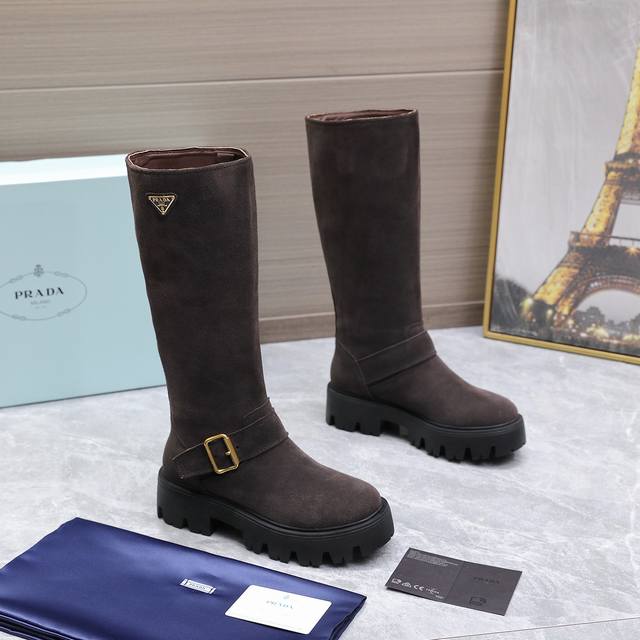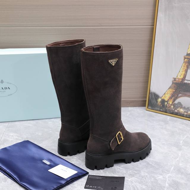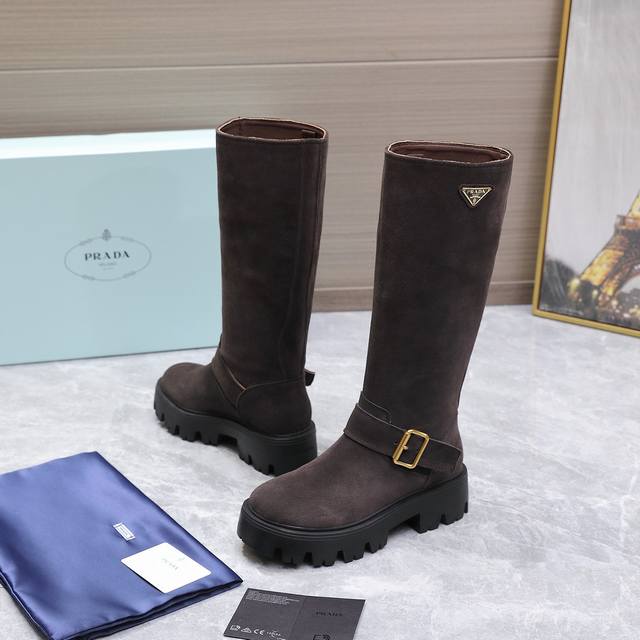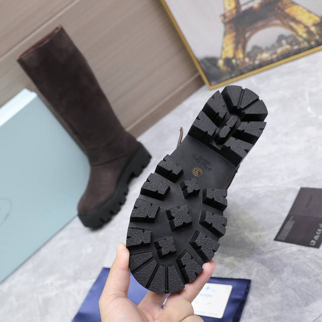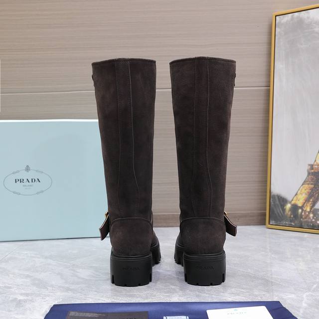 / 绒面 Prada 普拉达经典三角标一脚蹬王炸长靴 冬天买不到的系列,绝对是今年的大爆款!!贼好看!Prada靴子真的很哇塞!上脚大气显腿瘦气质这块刚好拿捏 鞋面