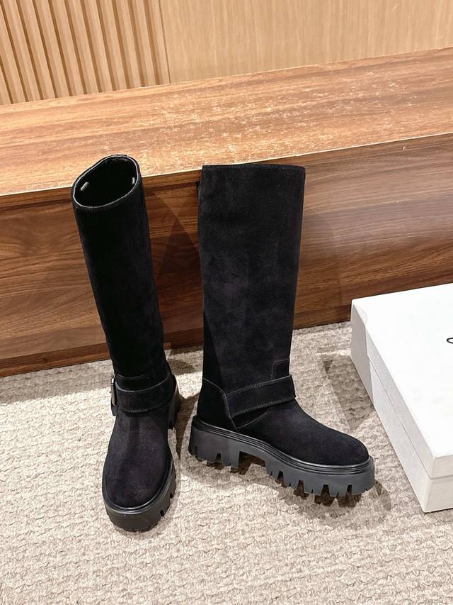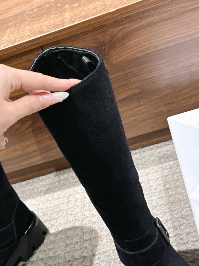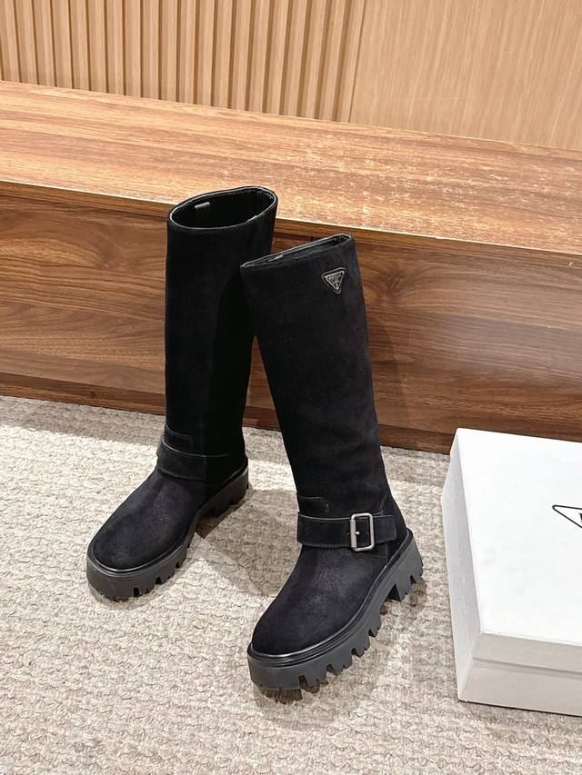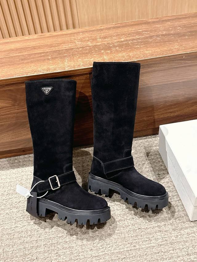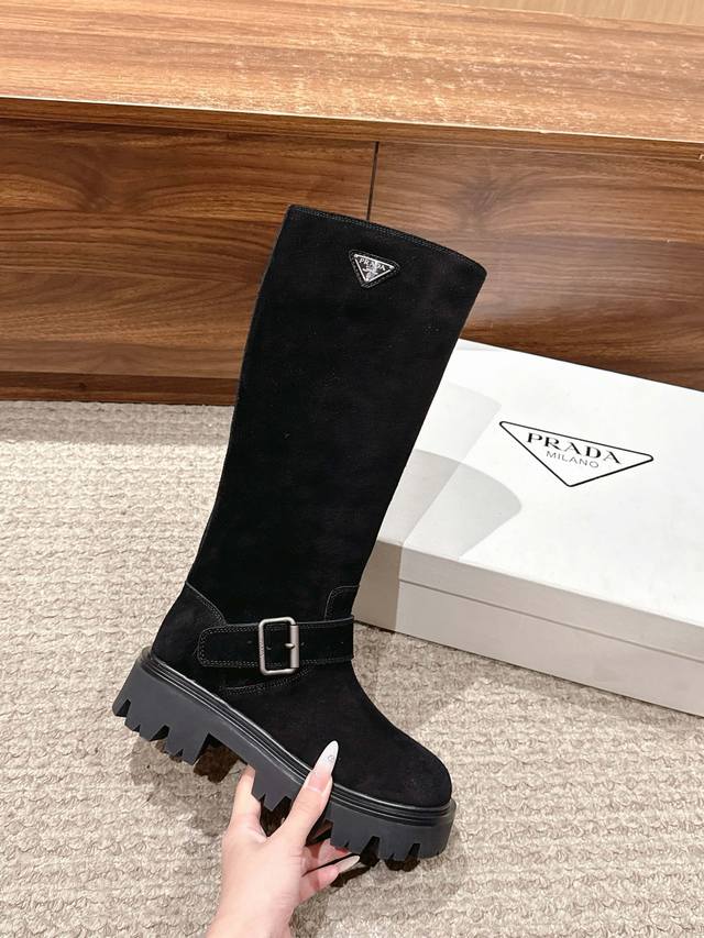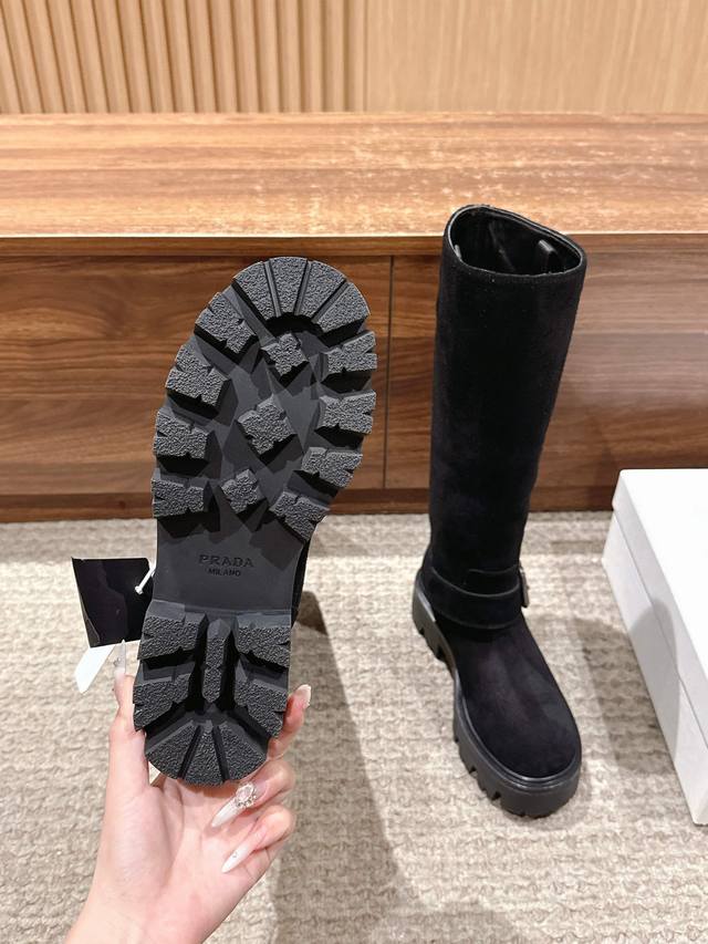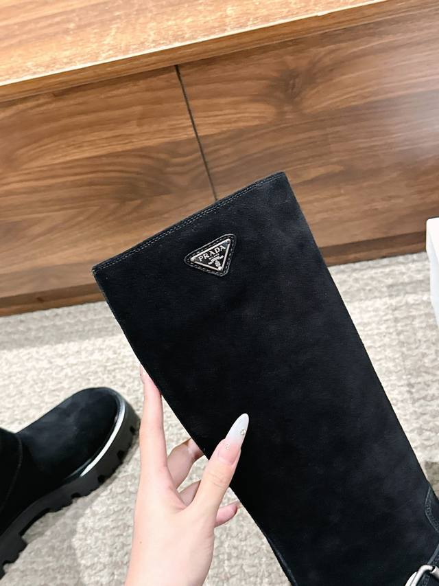 / 绒面 prada 普拉达经典三角标一脚蹬王炸长靴 冬天买不到的系列,绝对是今年的大爆款!!贼好看!prada靴子真的很哇塞!上脚大气显腿瘦气质这块刚好拿捏 鞋面