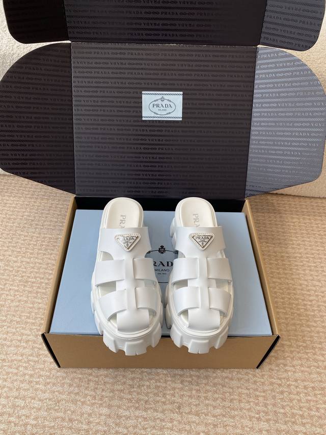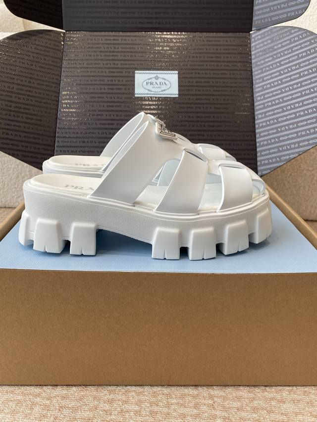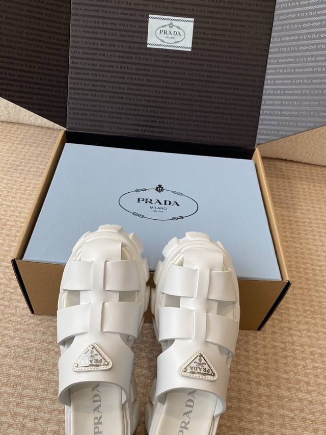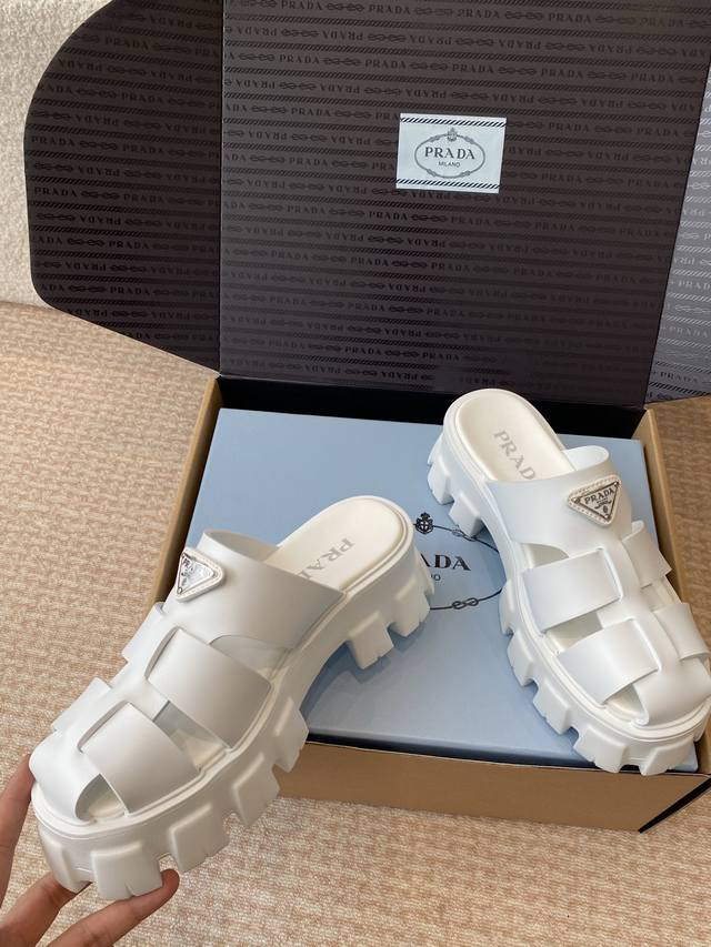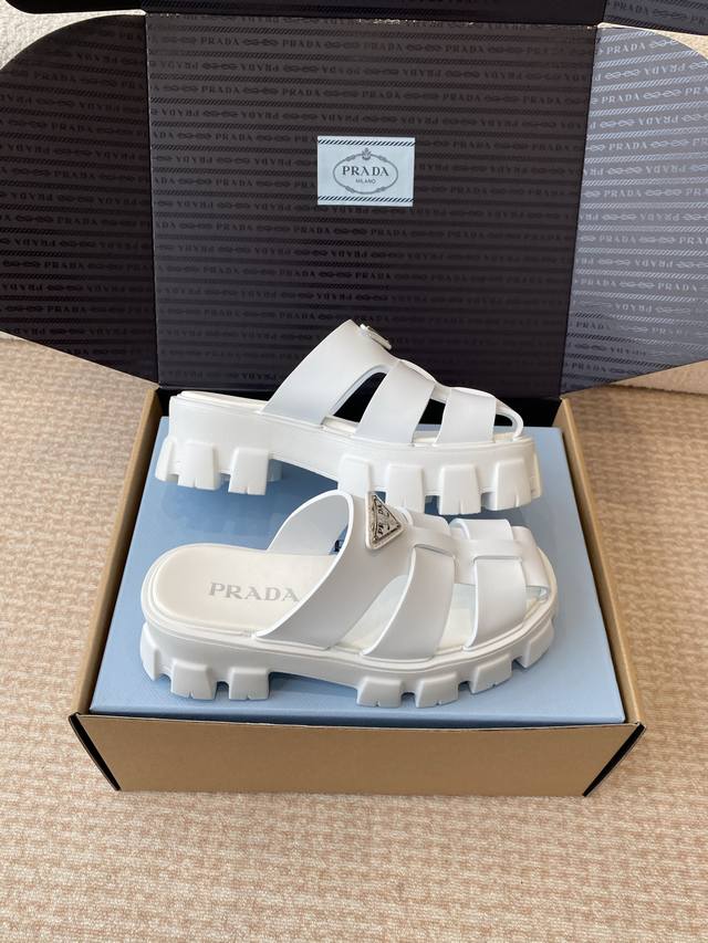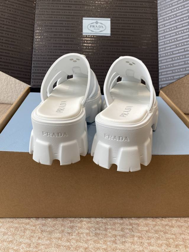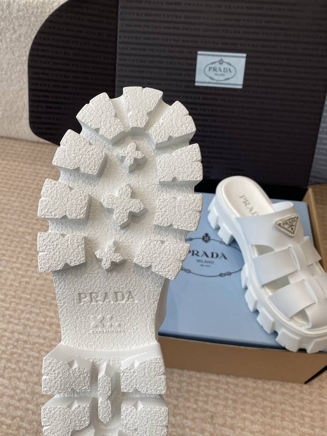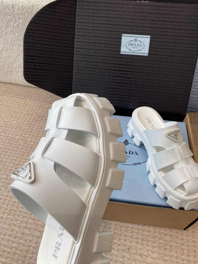 prada普拉达 25春夏新款锯齿罗马编织厚底橡胶凉拖鞋