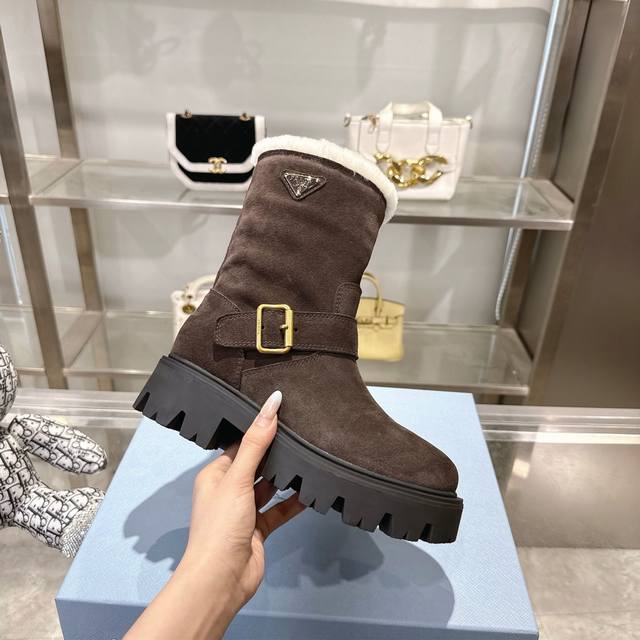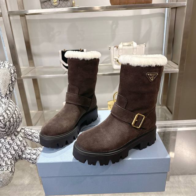 重磅2670普拉达 prada 秋冬雪地靴专柜新款厚底防滑雪地靴保暖羊毛短靴, DDD prada秋冬T台走秀网红明星同款, DDD 原版1:1复刻,精品品质!顶级版本 DDD 上脚舒适增高显瘦,优雅知性! DDD 是一款不可多得集舒适保暖休闲雪地靴! DDD 面料 : 高丝光牛反绒 头层牛皮 DDD 内里 : 澳州进口%100纯羊毛 DDD 垫脚 : 澳洲进口%100纯羊毛 DDD 大底 : 原版Tpu发泡底 DDD 四色女码:36–42。 DDD 包装齐全,配合格证纯棉布袋售后服务卡。 DDD pz:
