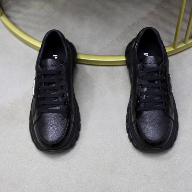 顶级原单 品牌:Prada 普拉达 标准码:男码38 44 45可以定做 等级:官网同款 材料:原版牛皮拼接 牛皮内里 原版组合双色耐磨柔软大底 款式类别:休闲