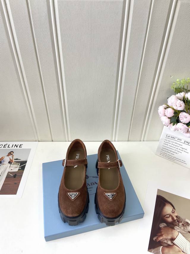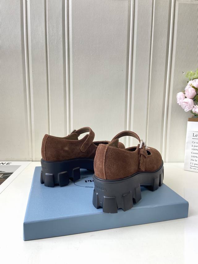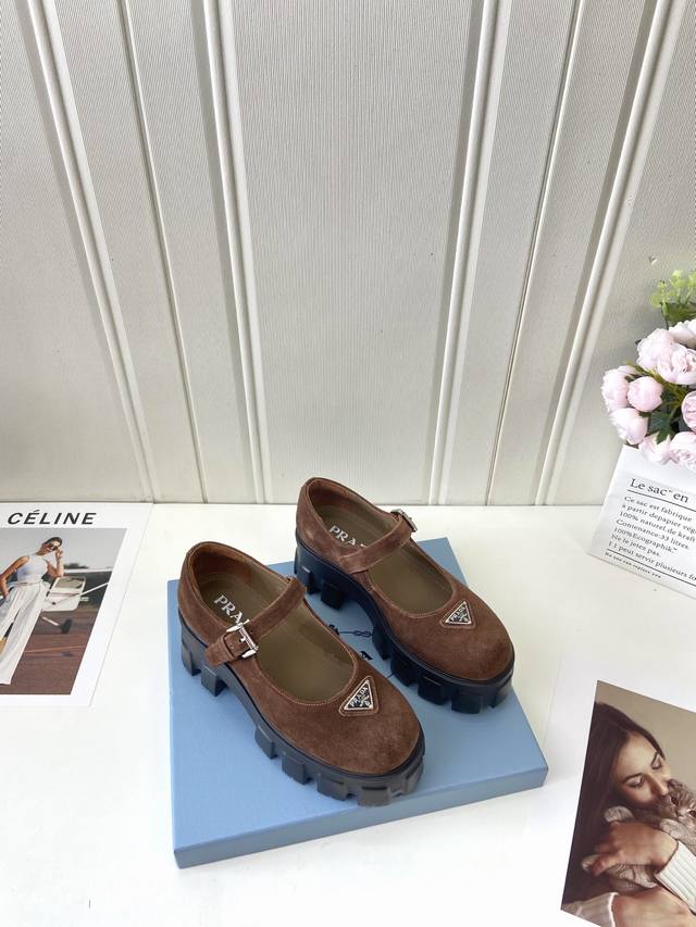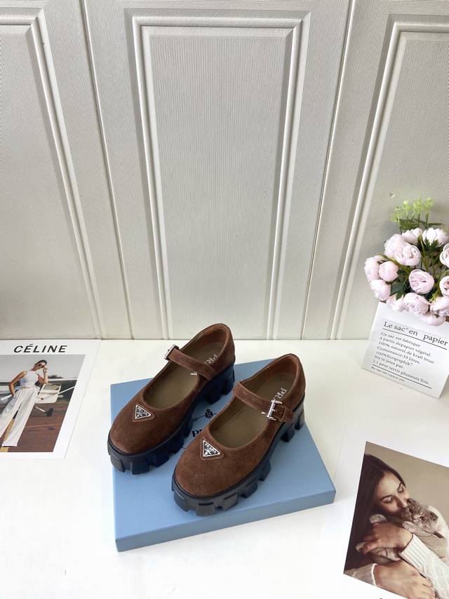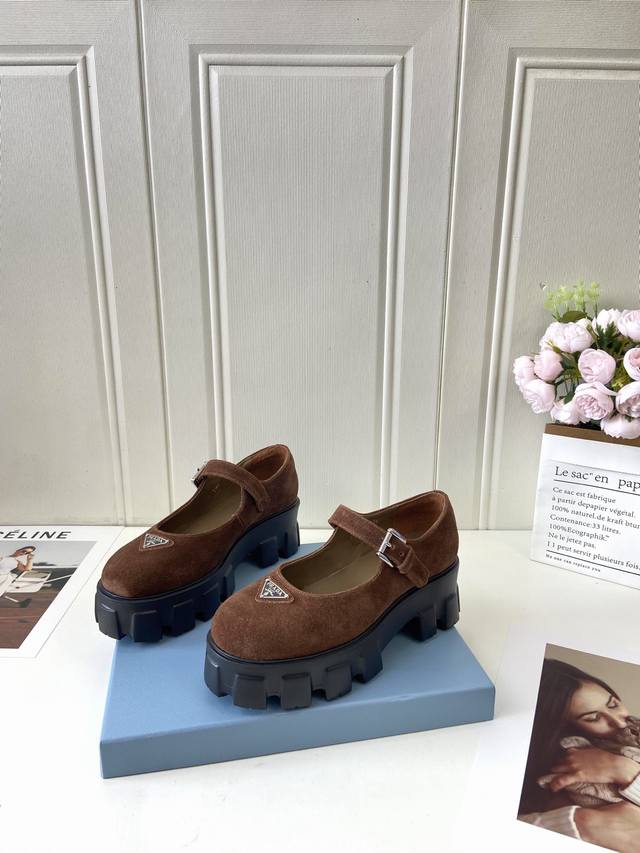 顶级品质 DDD prada 普拉达 25Fw最新Monolith 玛丽珍鞋 三角扣厚底小皮鞋乐福鞋 DDD 标志性Monolith鞋履的几何设计和大胆廓形为此款玛丽珍鞋赋予全新风格。混搭风格的鞋履结合经典线条和大胆细节,灵感源自 prada美学内在的二元性。鞋面配有饰带和金属搭扣 涂珐琅金属三角形徽标 DDD 复古时髦前卫的轮齿厚底鞋底搭配牛皮鞋面让整双鞋轻便舒适 鲜艳色彩 满足不同风格时髦人士的多种选择!标志性Logo印花搭配古沙滩凉鞋造型,每一个设计元素都踩在时髦点上! DDD 让整双鞋轻便舒适 鲜