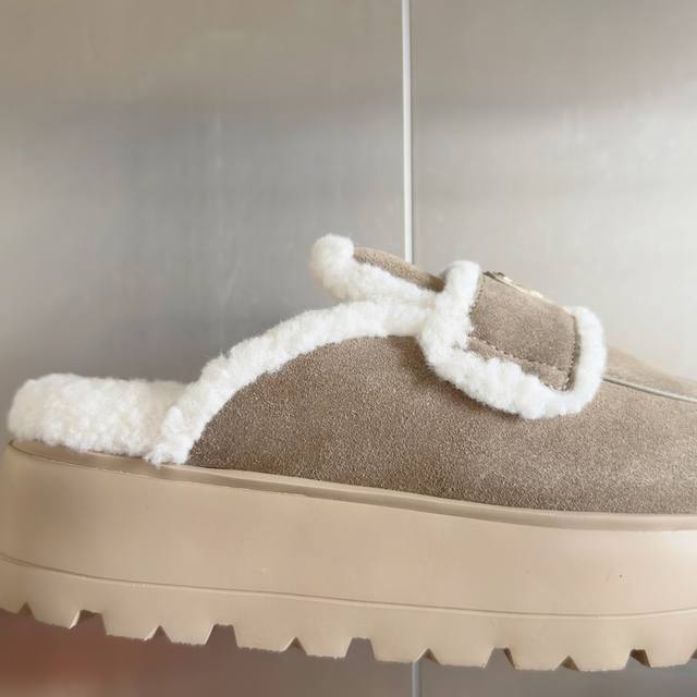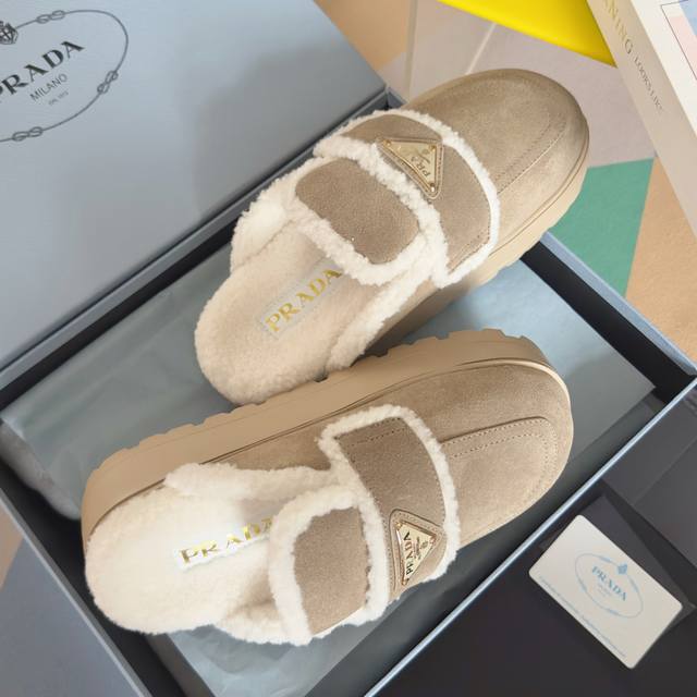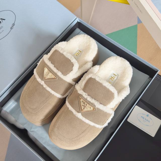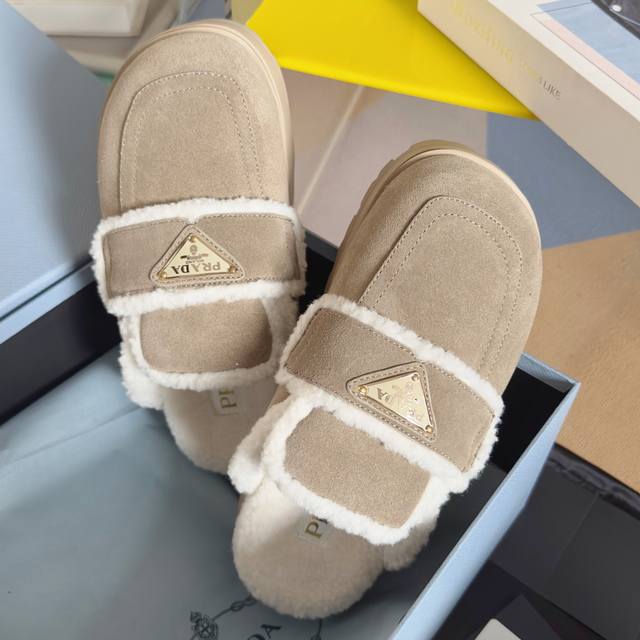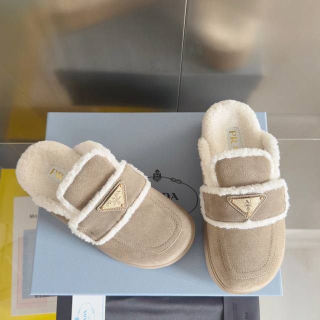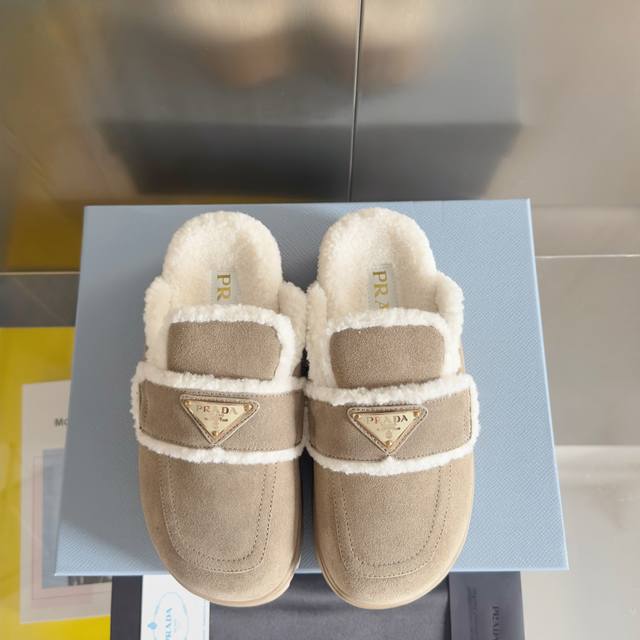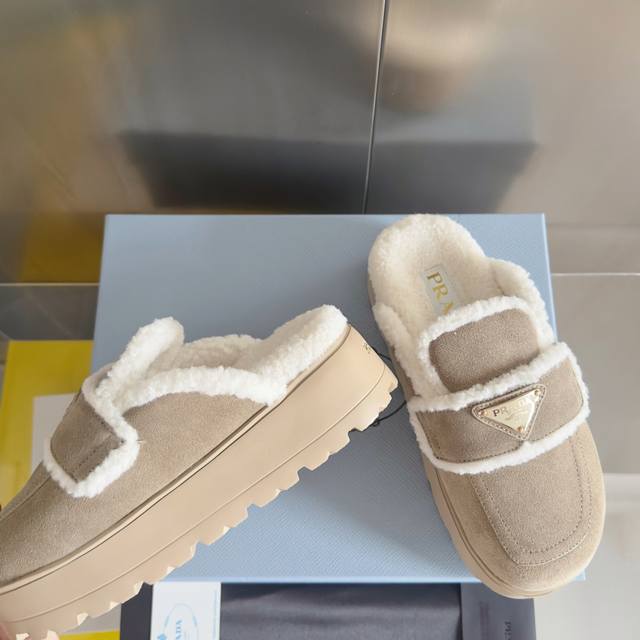 / 顶级版本:女款 prada普拉达 厚底 保暖 羊毛 半拖鞋 乐福鞋 原版购入开发 做货 这款绒面皮革乐福鞋集精致优雅气度与实穿功能于一体。设计别具一格,采用温暖
