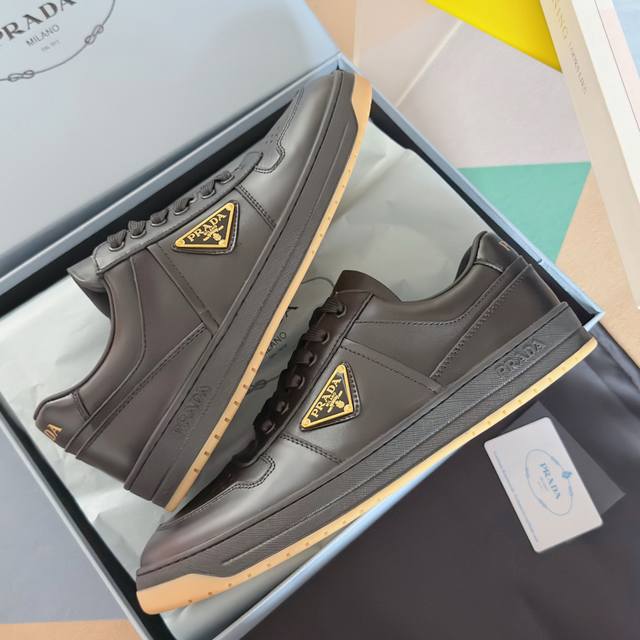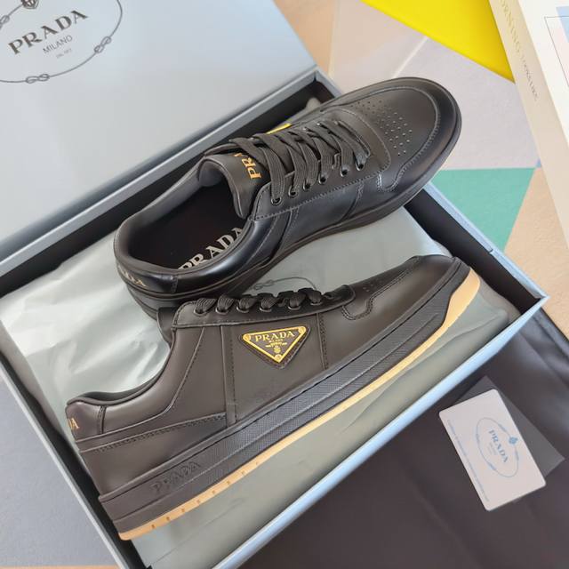 顶级版本:情侣款 DDD prada普拉达 Downtown系列 情侣款 三角标 休闲 运动鞋 板鞋 DDD 这款Nappa皮革运动鞋采用富有当代魅力的运动风设计,线条简洁,搭配轻盈的橡胶鞋底。通过不同角度演绎prada徽标,饰有标志性的涂珐琅金属三角形,彰显别具一格的经典魅力 DDD 配送专柜精美包装 DDD 面料 : 原版定制进口头层牛皮 DDD 内里 : 进口柔软羊皮里 DDD 鞋底 : 原版开模防滑橡胶材质 DDD 底厚 :3.5Cm DDD Size : 女款35-40 男款39-45 DDD