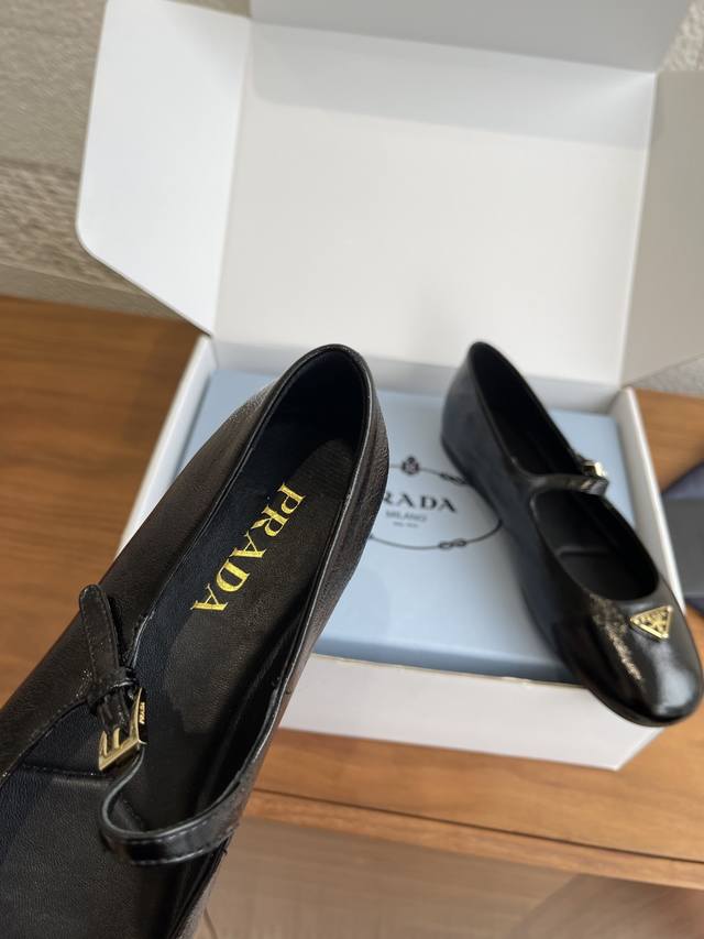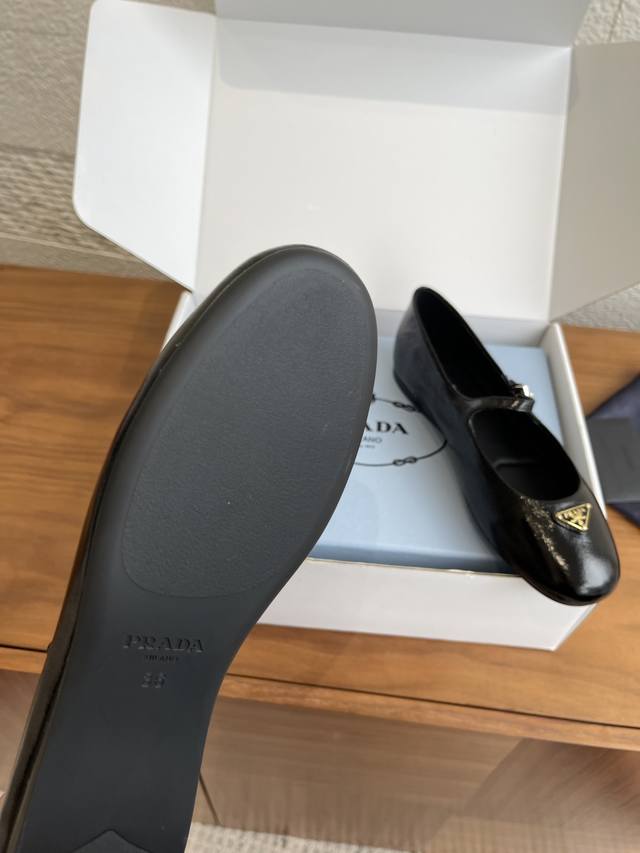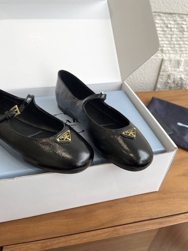 顶级版本: 配送专柜精美盒 Prada 普拉达 25Ss 秋冬新款 圆头 三角扣 平底 玛丽珍 芭蕾舞鞋 Prada 这款芭蕾平底鞋采用锥形廓形,Naplak漆面皮革平添一抹精致,彰显优雅柔美魅力。采用圆头设计,搭配橡胶鞋底,且饰有涂珐琅三角形金属徽标,彰显经典线条和精致优雅细节。饰有涂珐琅三角形金属徽标。平底绝对让脚步轻盈,100%不累脚,上脚稳稳的轻松感。 面料: 进口小羊皮 进口漆皮 内里 垫脚: 进口羊皮 大底: 原版开模橡胶大底 Size: 35-41 40 41定做不退换