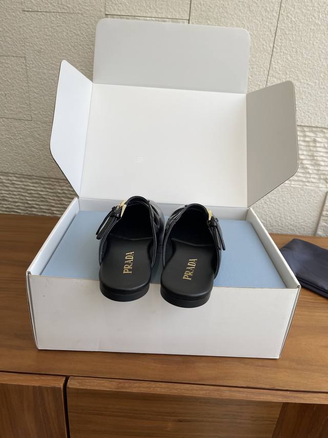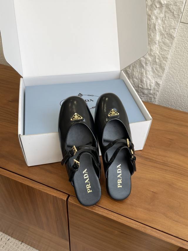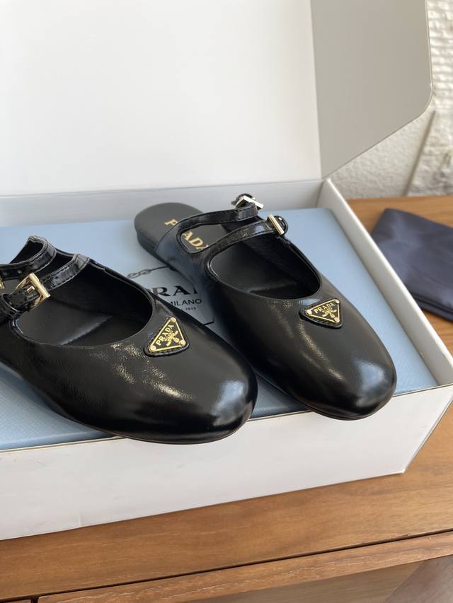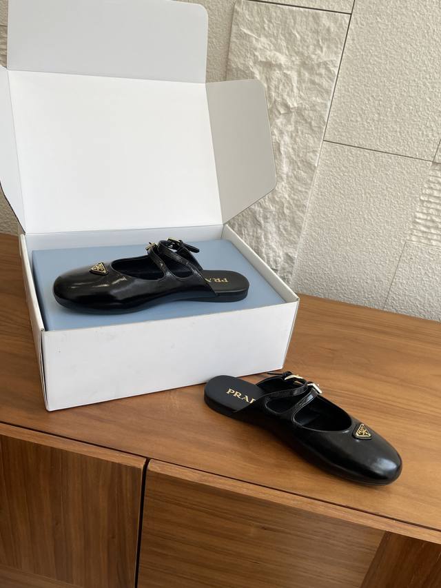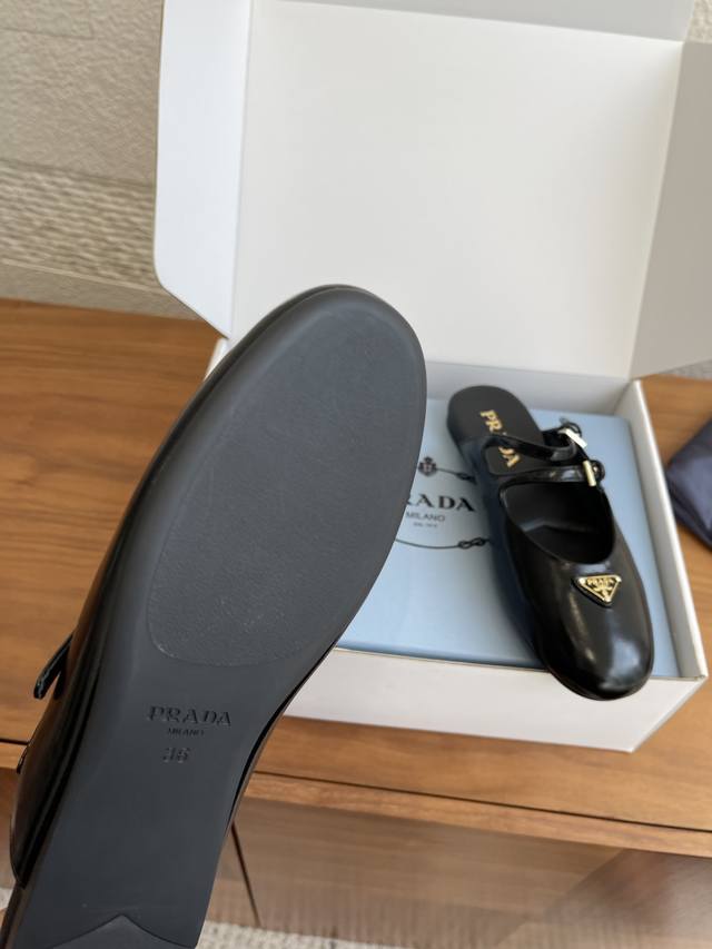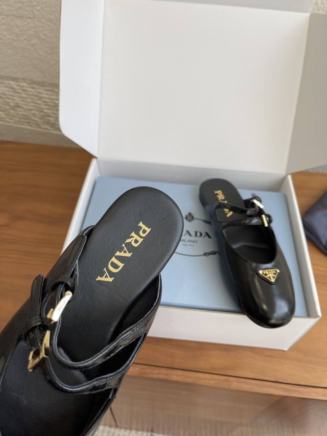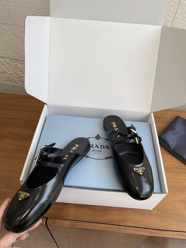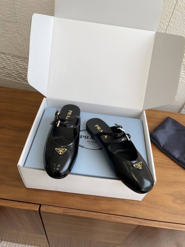 顶级版本: 配送专柜精美盒 Prada 普拉达 25Ss 秋冬新款 圆头 双带 包头 三角扣 半拖 穆勒鞋 Prada 这款半拖以芭蕾平底鞋为廓形,Naplak漆面皮革平添一抹精致,彰显优雅柔美魅力。采用圆头设计,搭配橡胶鞋底,且饰有涂珐琅三角形金属徽标,彰显经典线条和精致优雅细节。饰有涂珐琅三角形金属徽标。平底绝对让脚步轻盈,100%不累脚,上脚稳稳的轻松感。 面料: 进口羊漆皮 进口马毛 内里 垫脚: 进口羊皮 大底: 原版开模橡胶大底 Size: 35-41 40 41定做不退换