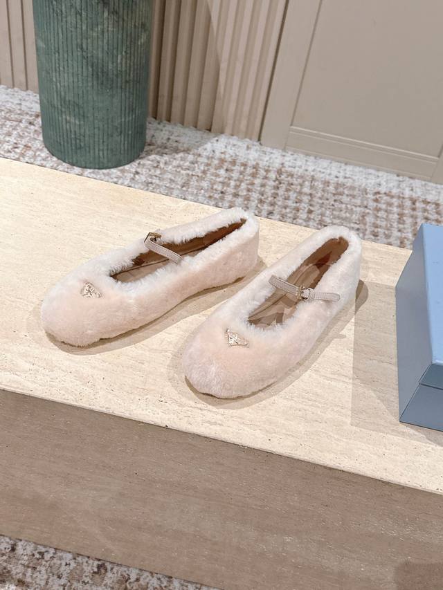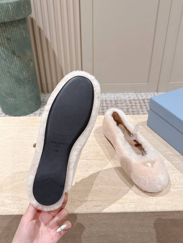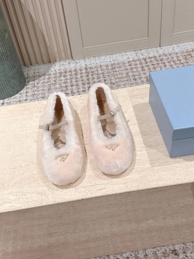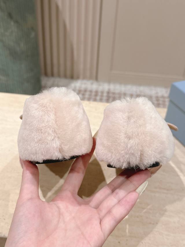 / 顶级版本: :prad A普拉达 毛茸茸系列 太可爱啦,卷卷羊毛萌萌哒又保暖 造型穿搭也很抢眼的;喜欢 专柜一致的编织羊毛,质地均匀细腻 鞋底为开模胶底,有一定