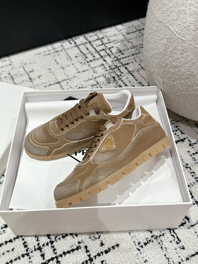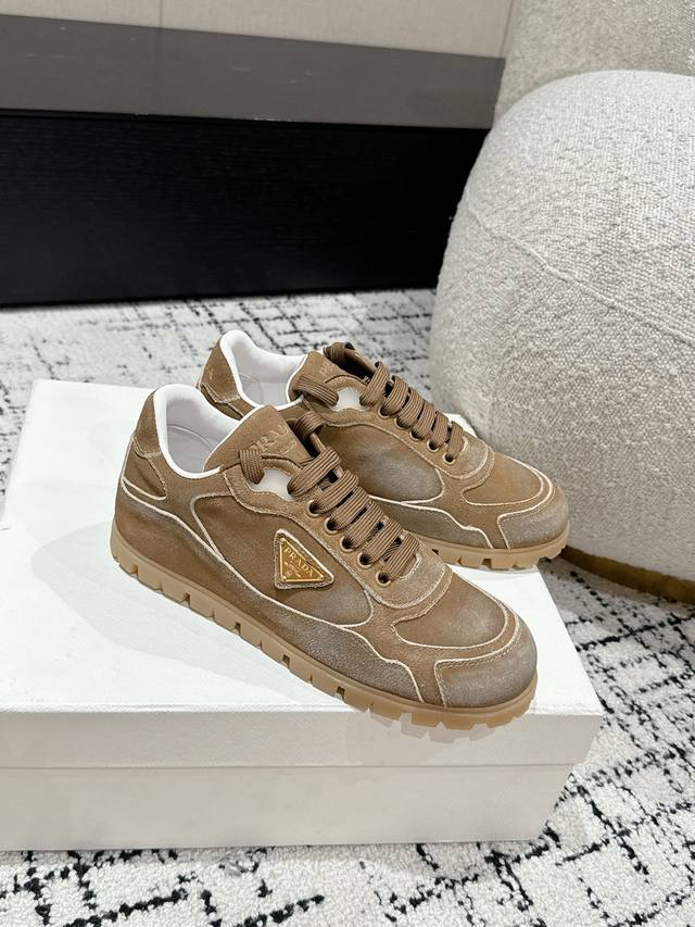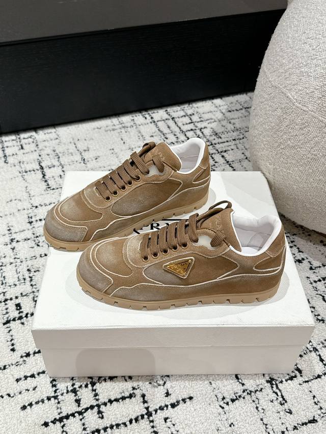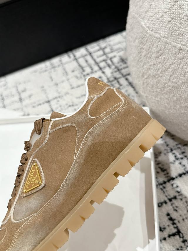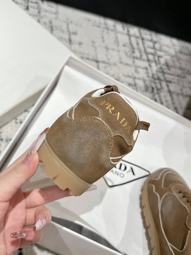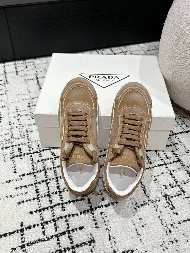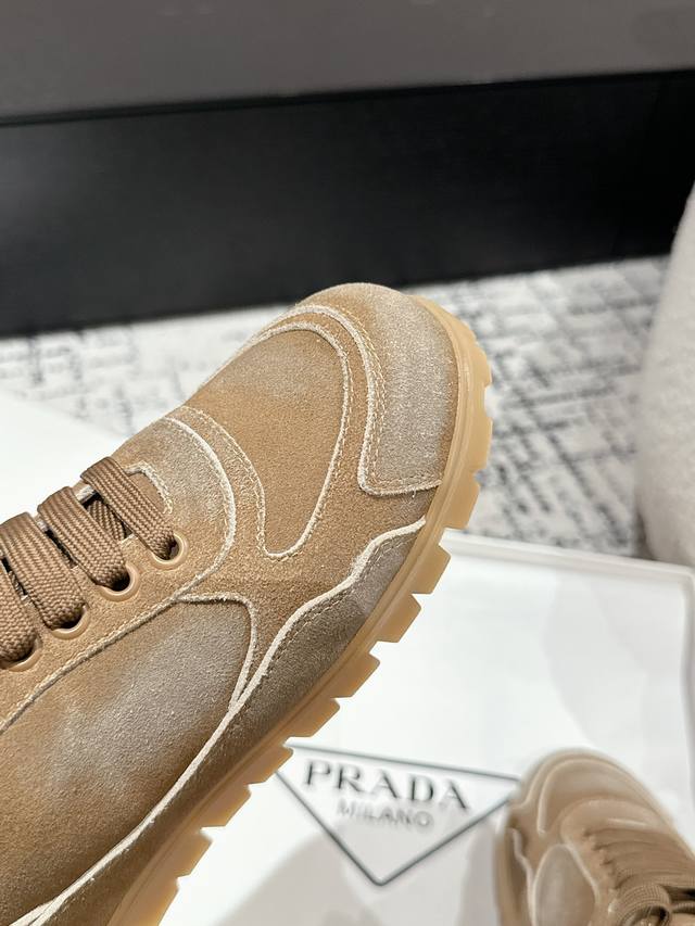 顶级版本 prada普拉达 24 新款系带 德训鞋 休闲鞋 原版购入开发 擦色牛反绒 区别市场普通版本 复古擦色搭配三角扣 高级气质 随意搭配 上脚非常舒适 鞋