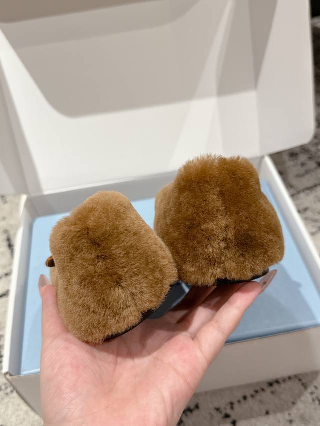 / 顶级版本 Prada普拉达 25 秋冬 三角标芭蕾舞鞋平底鞋玛丽珍 毛鞋 这款Nappa羊毛面包芭蕾平底鞋以锥形轮廓展现出优雅魅力。采用圆头设计,经典线条搭配雅