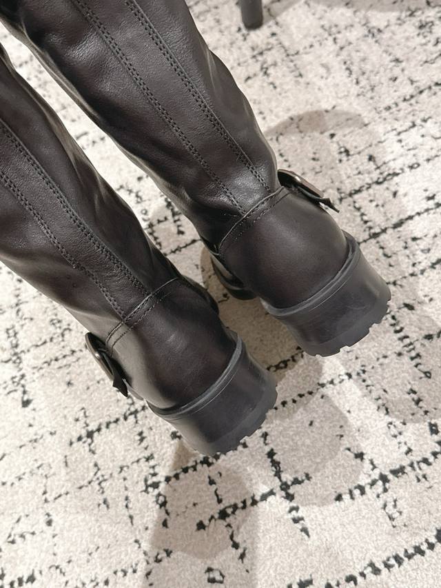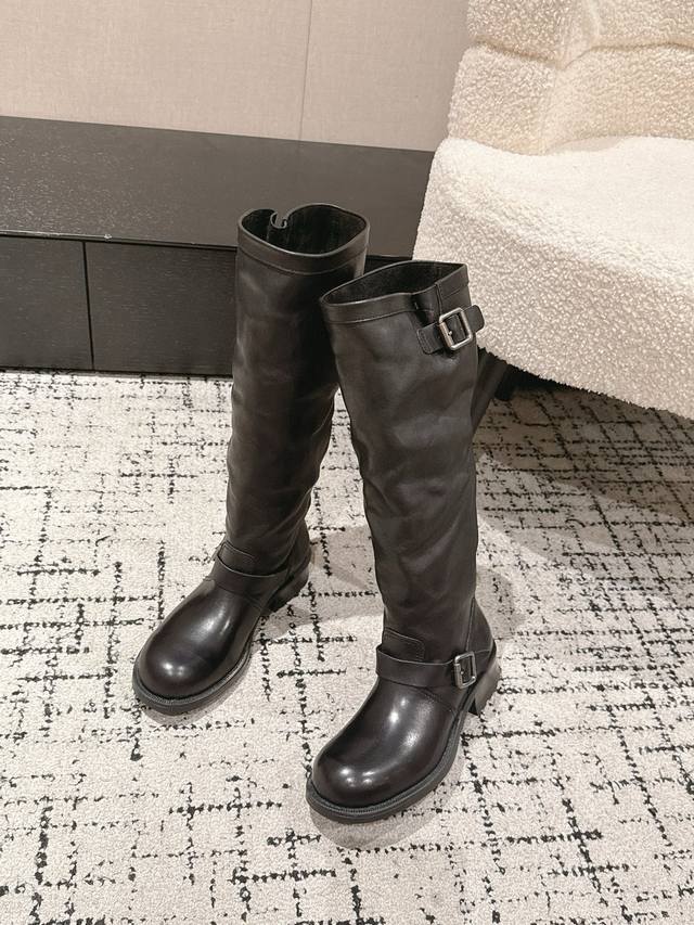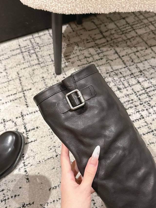 顶级版本 Prada 普拉达 25 Ss 秋冬新品 皱皱靴 机车靴长靴 Prada 骑士长靴| 野蛮生长 碾碎精致套路 油蜡皮揉出褶皱野心 金属扣锁住 反精致 的叛逆 靴筒松垮是故意的慵懒 高级可以很野 松弛才是最狠的时髦暗器 鞋面 : 采用植柔小牛皮 自然褶皱非常复古 内里 : 牛皮内里 垫脚牛皮 大底 : 意大利真皮注塑组合大底 Size :#35-40 40.41订做