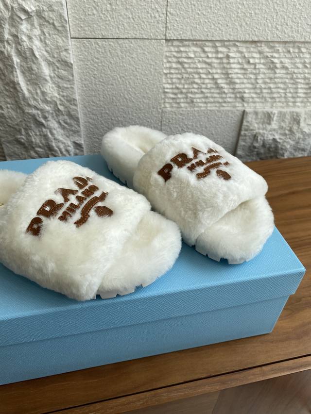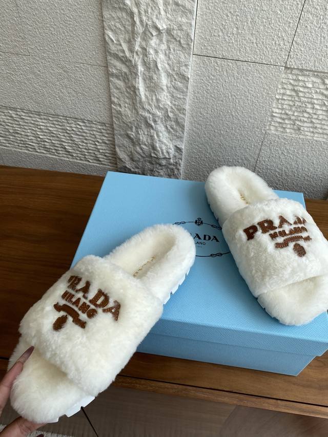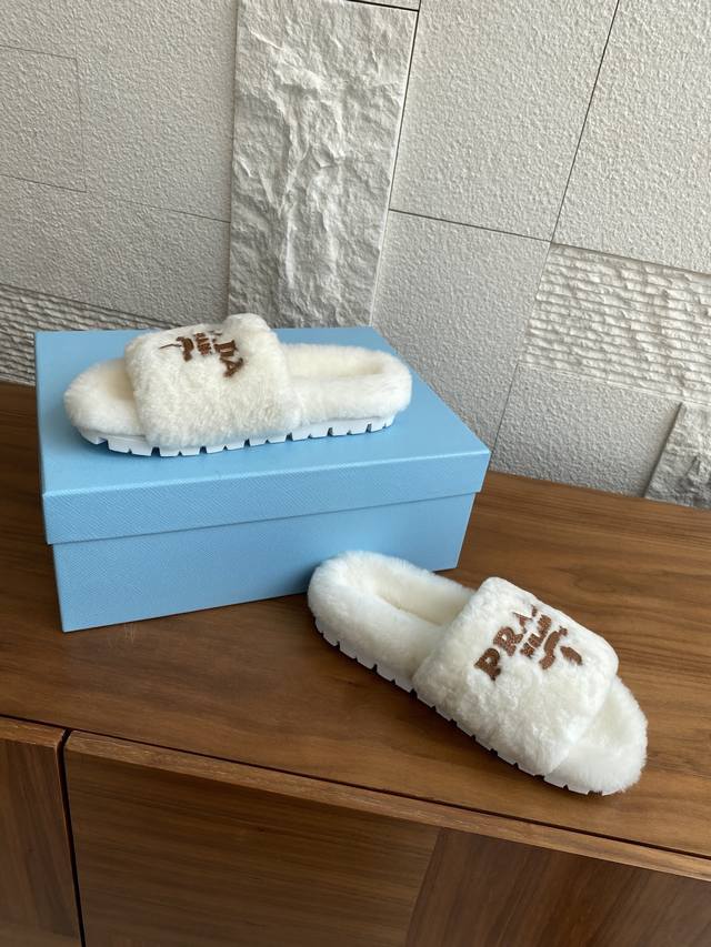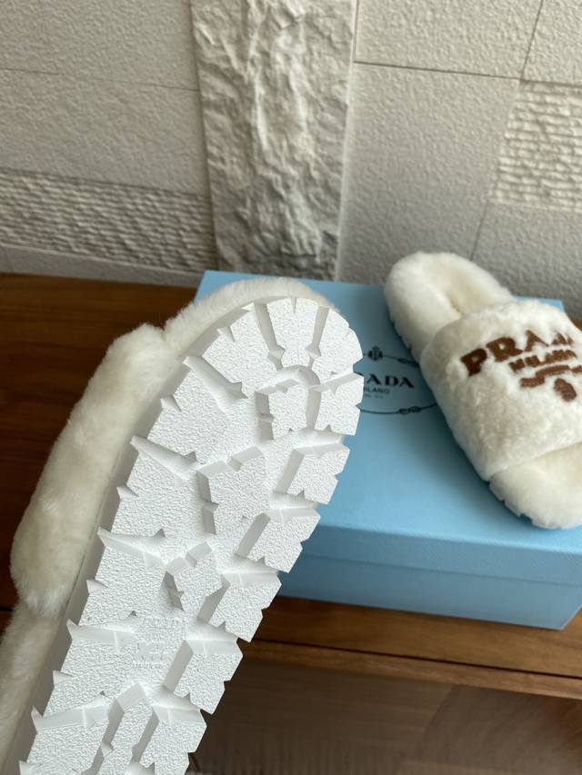 顶级版本: Prada 普拉达 25Ss 秋冬新款 一脚蹬 懒人拖 羊毛拖 Prada 羊毛拖 懒人必备 穿了会上瘾的拖鞋 巨软巨舒服 让你摆脱一切的束缚感 垫