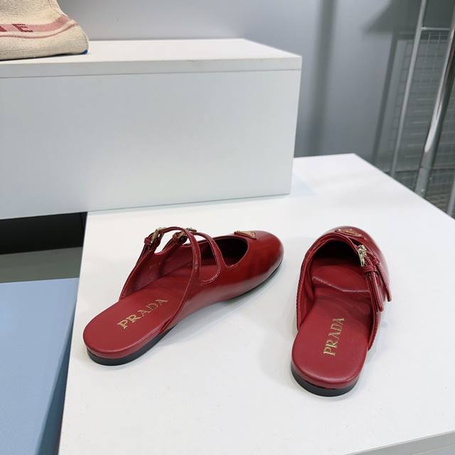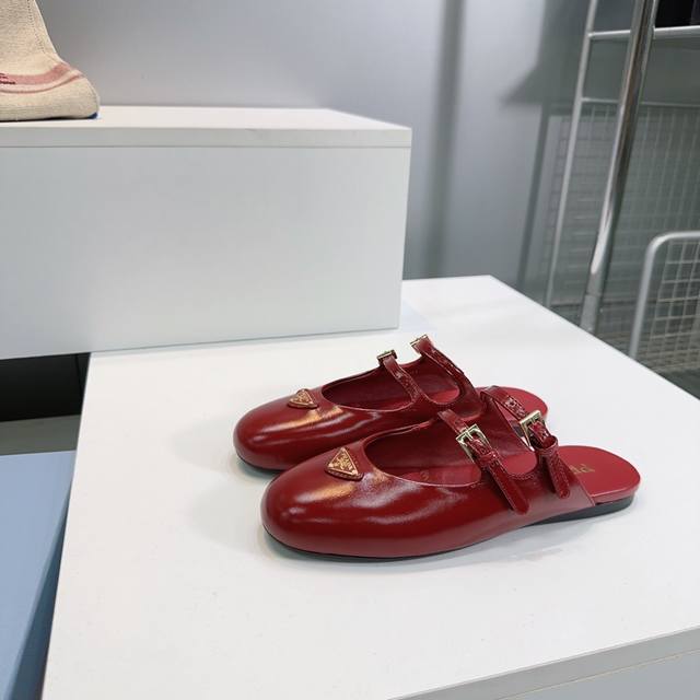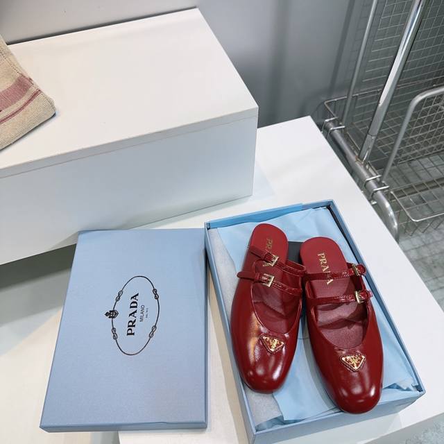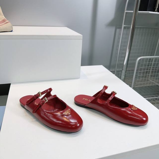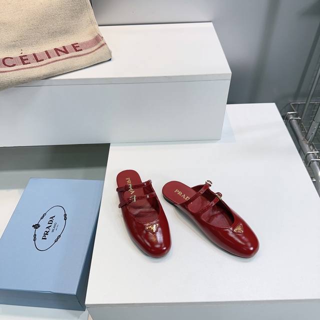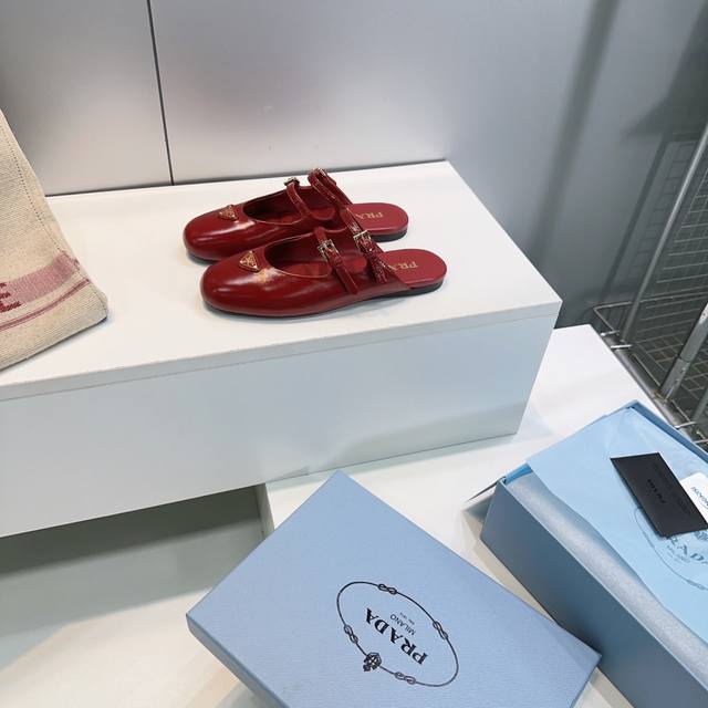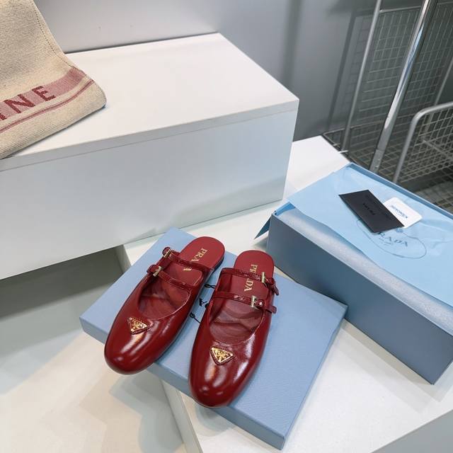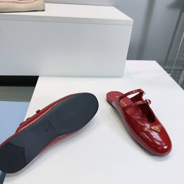 高品质出厂 !顶级品质Prada普拉达经典三角标一字扣带玛丽珍鞋平底半拖单鞋! 杨颖同款氛围感穿搭来袭 三角标点缀 轻松Get时髦气息 鞋面采用进口油蜡羊皮 马毛 内里垫脚均为羊皮 原版开模橡胶大底 轻便舒适 码数:35-41 40 41定做不退换 配原版包装
