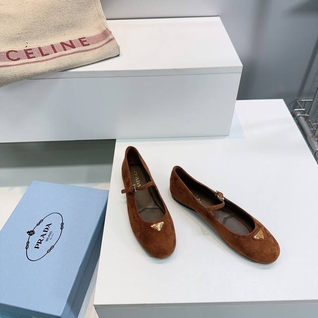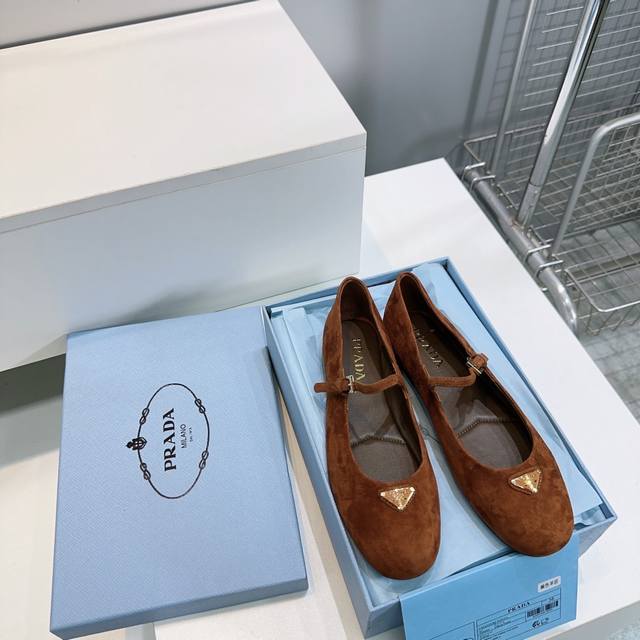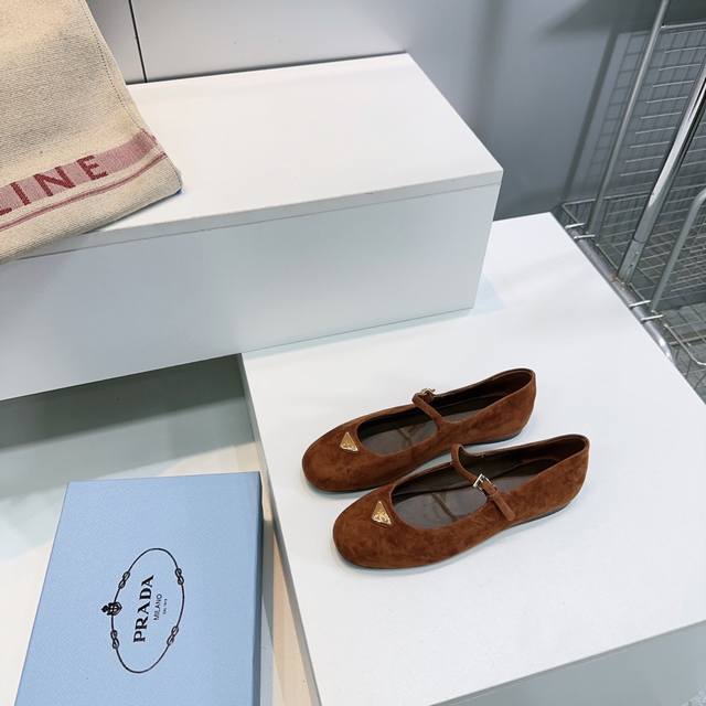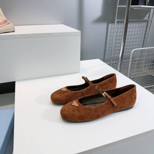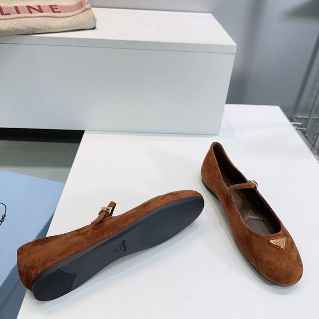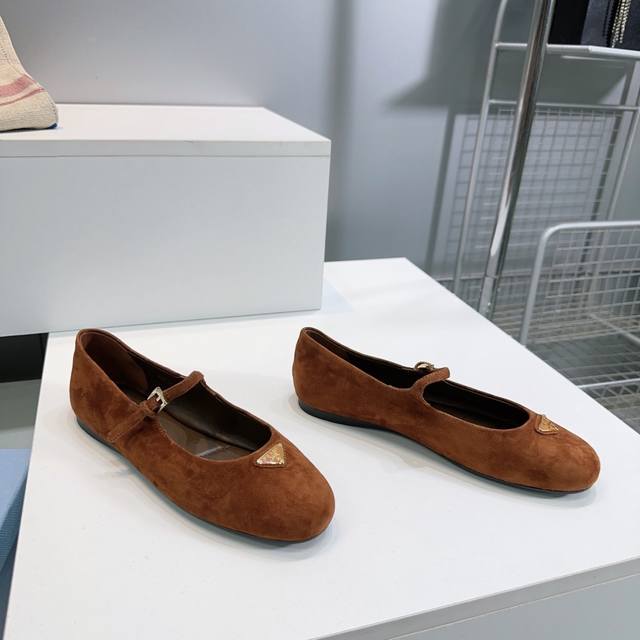 高品质出厂 !顶级品质Prada 普拉达经典三角标一字扣带玛丽珍鞋平底乐福鞋单鞋! 杨颖同款氛围感穿搭来袭 三角标点缀 轻松Get时髦气息 鞋面采用进口羊反绒 内里垫脚均为羊皮 原版开模橡胶大底 轻便舒适 码数:35-41 40 41定做不退换 配原版包装