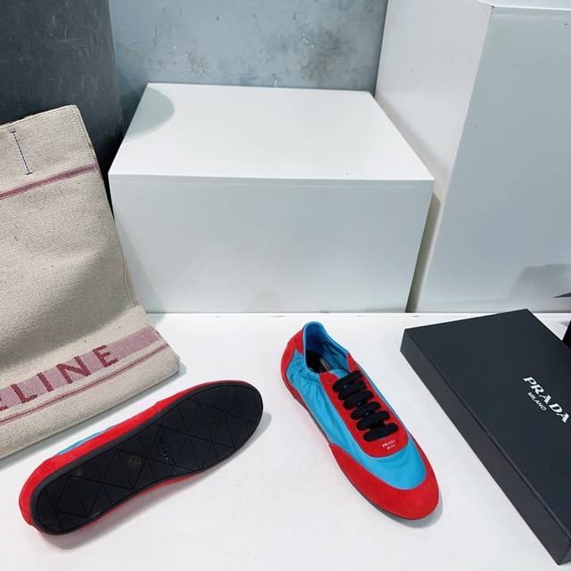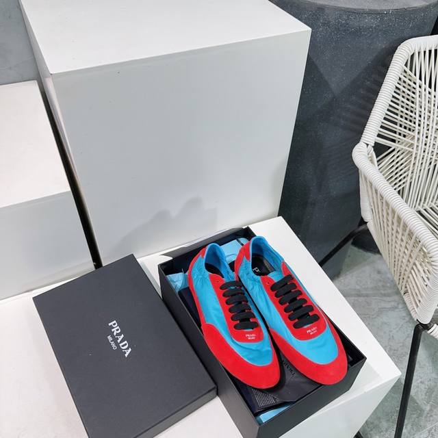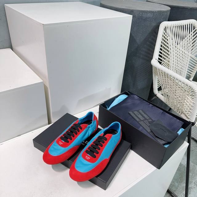 高品质出厂 !顶级品质Prada 普拉达25春夏新款德训鞋阿甘休闲鞋! 鞋面麂皮有肌理感,内里羊皮包裹,软软糯糯的! 鞋垫加厚小羊皮,踩上去无比舒适,有支撑感,又包裹得很好的感觉! 鞋型包裹感十足,轻便好穿 实用的一款休闲鞋,显高显大长腿! 春夏配色干净清爽,一年四季都需要,配裙子,裤子都能轻松驾驭 鞋面进口麂皮 原版尼龙布 内里垫脚羊皮 原版开模橡胶大底! 码数:35-40 40 订做不退换 配原版包装