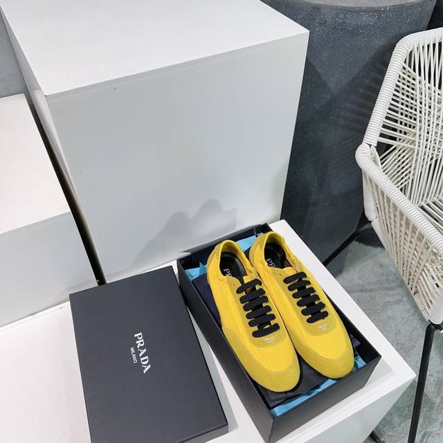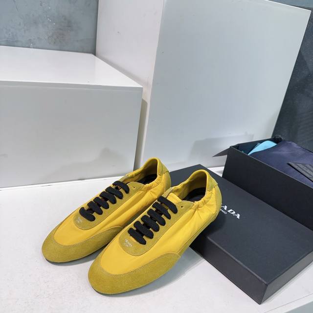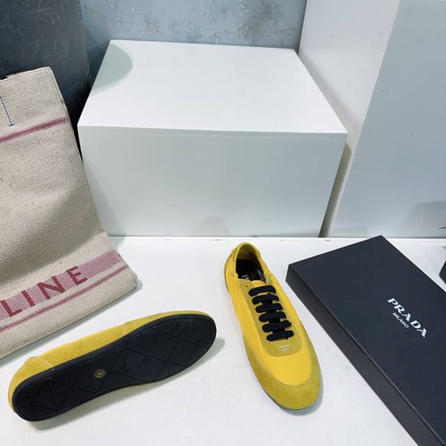 高品质出厂 !顶级品质Prada 普拉达25春夏新款德训鞋阿甘休闲鞋! 鞋面麂皮有肌理感,内里羊皮包裹,软软糯糯的! 鞋垫加厚小羊皮,踩上去无比舒适,有支撑感,又包裹得很好的感觉! 鞋型包裹感十足,轻便好穿 实用的一款休闲鞋,显高显大长腿! 春夏配色干净清爽,一年四季都需要,配裙子,裤子都能轻松驾驭 鞋面进口麂皮 原版尼龙布 内里垫脚羊皮 原版开模橡胶大底! 码数:35-40 40 订做不退换 配原版包装