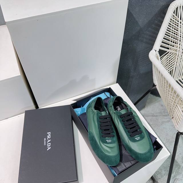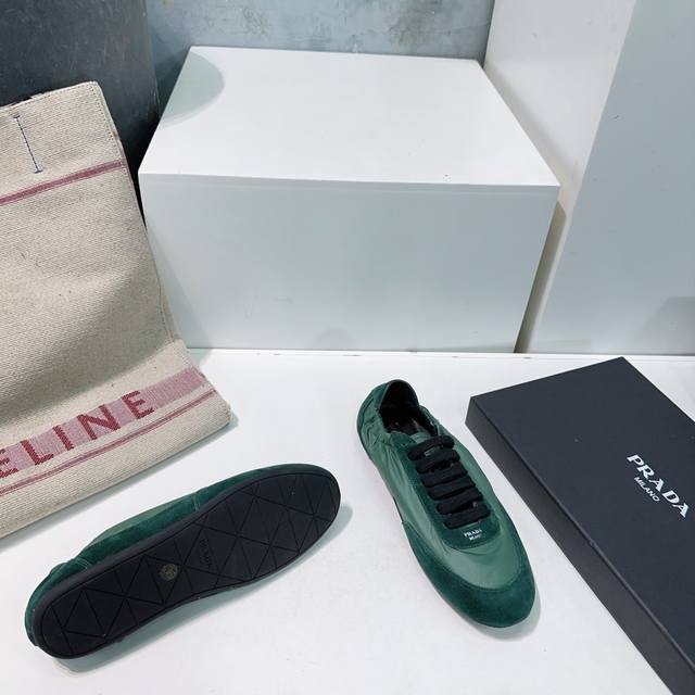 高品质出厂 !顶级品质Prada 普拉达25春夏新款德训鞋阿甘休闲鞋! 鞋面麂皮有肌理感,内里羊皮包裹,软软糯糯的! 鞋垫加厚小羊皮,踩上去无比舒适,有支撑感,又包裹得很好的感觉! 鞋型包裹感十足,轻便好穿 实用的一款休闲鞋,显高显大长腿! 春夏配色干净清爽,一年四季都需要,配裙子,裤子都能轻松驾驭 鞋面进口麂皮 原版尼龙布 内里垫脚羊皮 原版开模橡胶大底! 码数:35-40 40 订做不退换 配原版包装