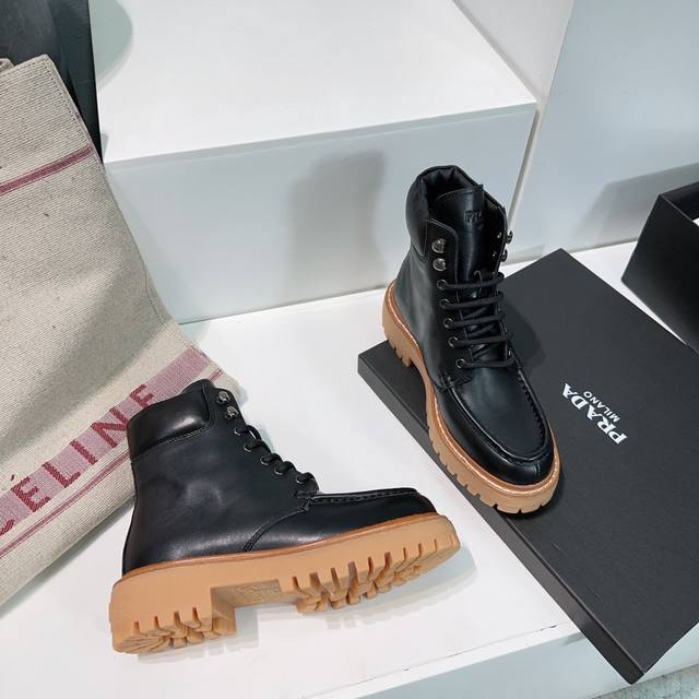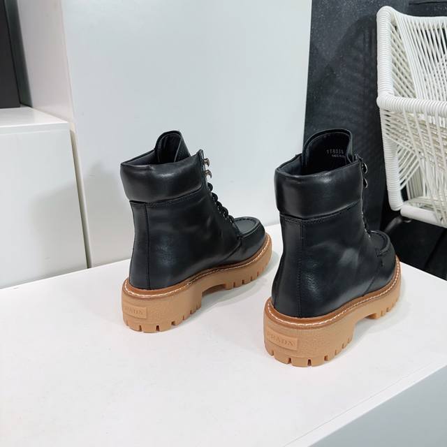 G292 prada 普拉达 25Ss秋冬新款三角扣厚底毛里短靴女...