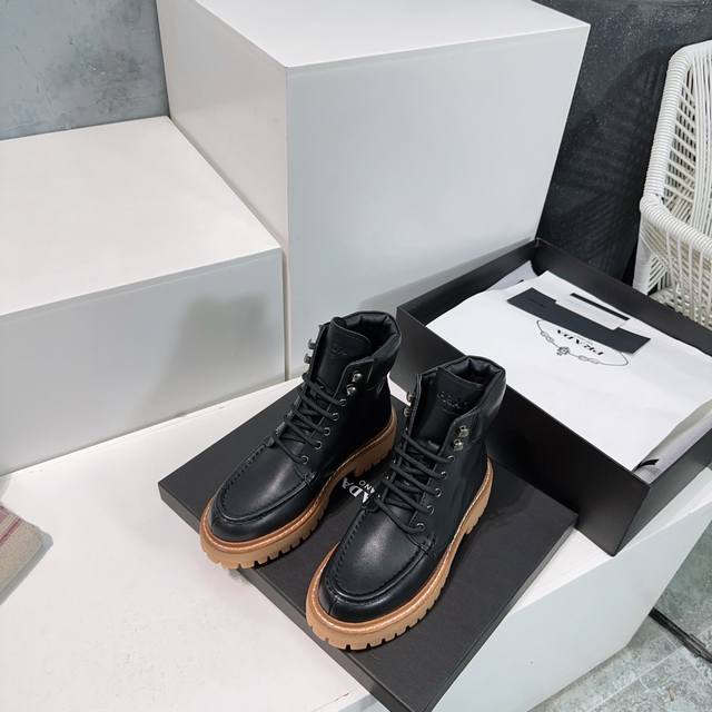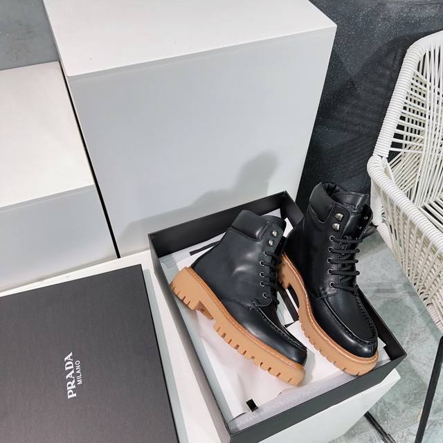 / 高品质出厂 !Prada普拉达25Ss秋冬新款松糕厚底复古擦色做旧短靴 秋冬T台走秀主推款!整个系列都充满了令人兴奋和意外的元素结合!复古带点贵气的感觉,上脚非
