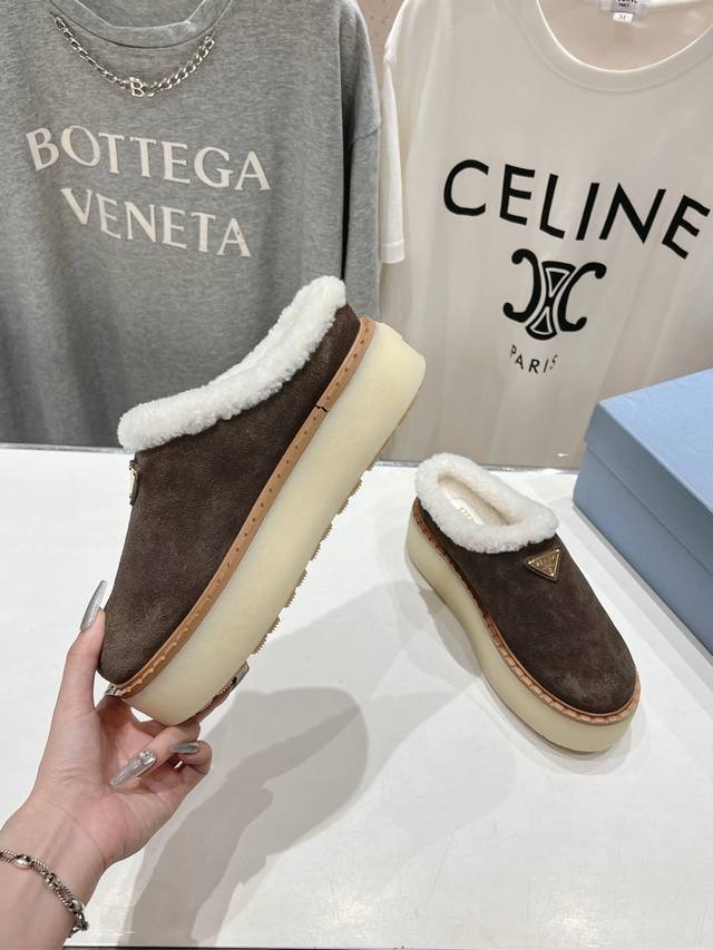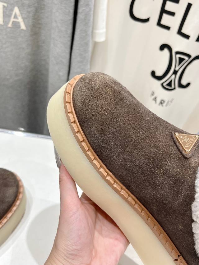 prada 普拉达 新品三角标厚底羊毛乐福鞋 雪地靴 材质与工艺: 原版定制进口羊皮毛一体 170%真羊毛 保暖神器 Zp开模大底...