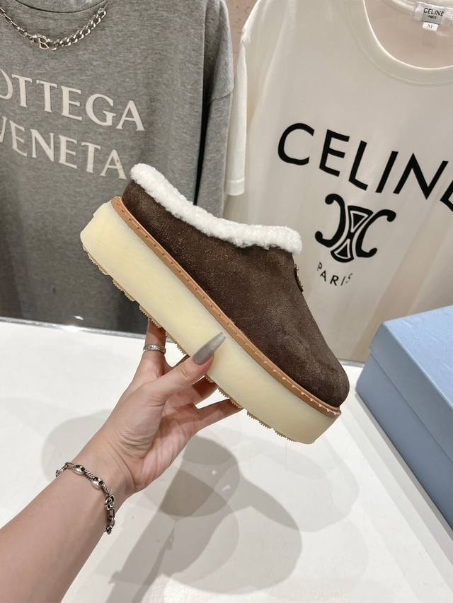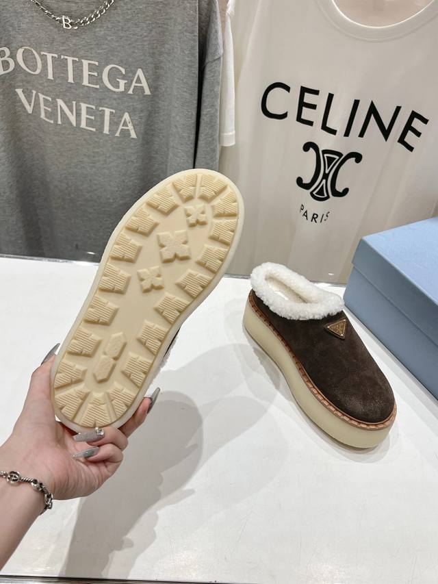 高版本出厂 Prada*普拉达F029 2025Ss秋冬新款毛里厚底半包拖鞋休闲鞋闪亮登场 时尚大方的设计呈现经典轮廓。不管面对任何场所 主场只属于你! 面料:原版进口擦色牛反绒 内里:进口羊卷毛 五金:原版五金1:1开模 沿条:真皮沿条 大底:原版开模双色Tpu大底 码数:35-39 40 41 订做不退换