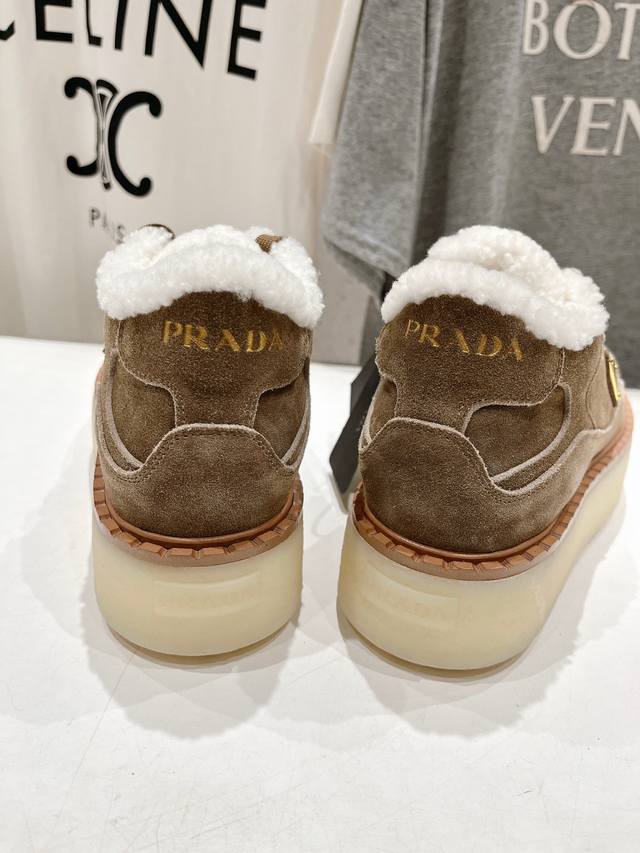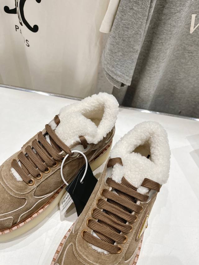 高版本出厂 Prada*普拉达F029 2025Ss秋冬新款毛里厚底运动鞋休闲鞋闪亮登场 时尚大方的设计呈现经典轮廓。不管面对任何场所 主场只属于你! 面料:原版进口牛反绒 内里:进口羊卷毛 五金:原版五金1:1开模 大底:原版开模Tpu大底 码数:35-39 40 41 订做不退换