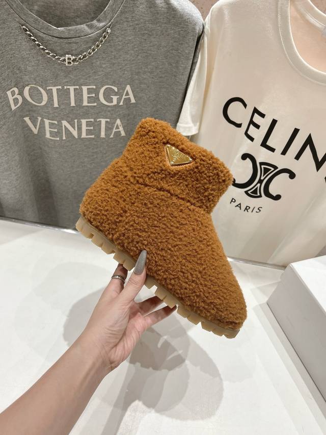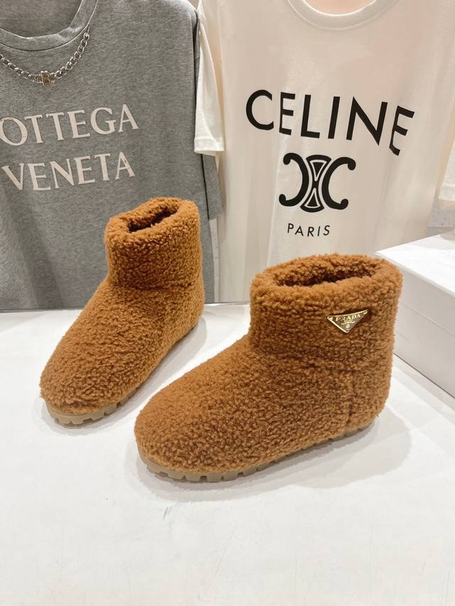 / 高版本出厂 Prada*普拉达F029 2025Ss秋冬新款直筒雪地靴羊毛短靴 时尚大方的设计呈现经典轮廓。不管面对任何场所 主场只属于你! 面料:羊毛 内里:
